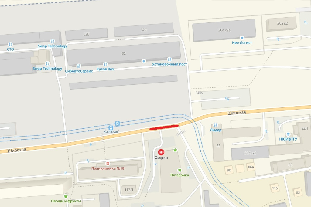С 30 июня до 31 августа транспорт не будут пускать на улицу Широкую, где разроют дорогу между зданиями №32 и 113/2.