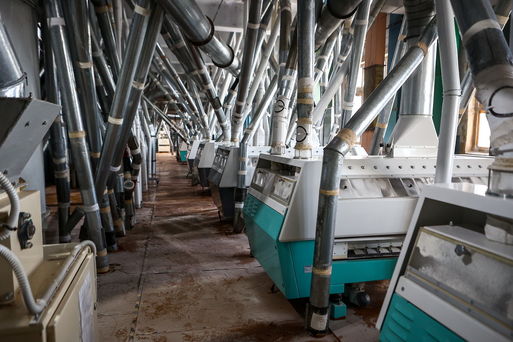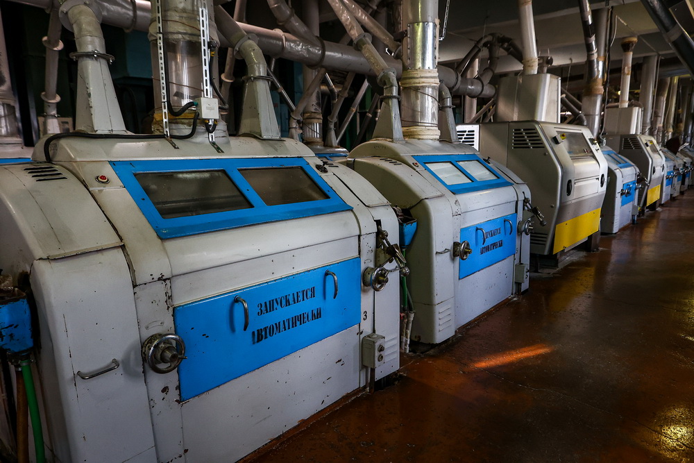 Перед тем как попасть на переработку, зерно проходит несколько этапов очистки. Из него убирают все посторонние мелочи, затем его увлажняют и дают ему отлежаться. После этого оно отправляется в мельницу. По словам Лилии Дробышевой, в каждой смене есть специальный человек, который следит за машинами и настраивает станки. Ещё один специалист — магнитчик — отвечает за работу защиты, удаляющей из сырья металлопримеси. Когда оборудование хорошо настроено, а на каждую систему идёт нужное количество зерна, то мельница работает как часы.