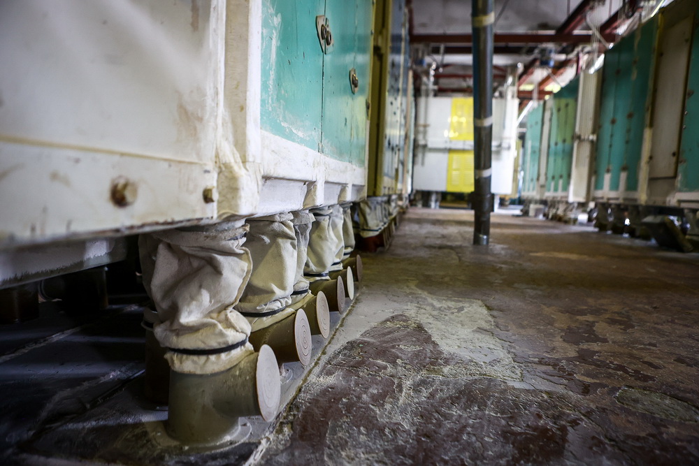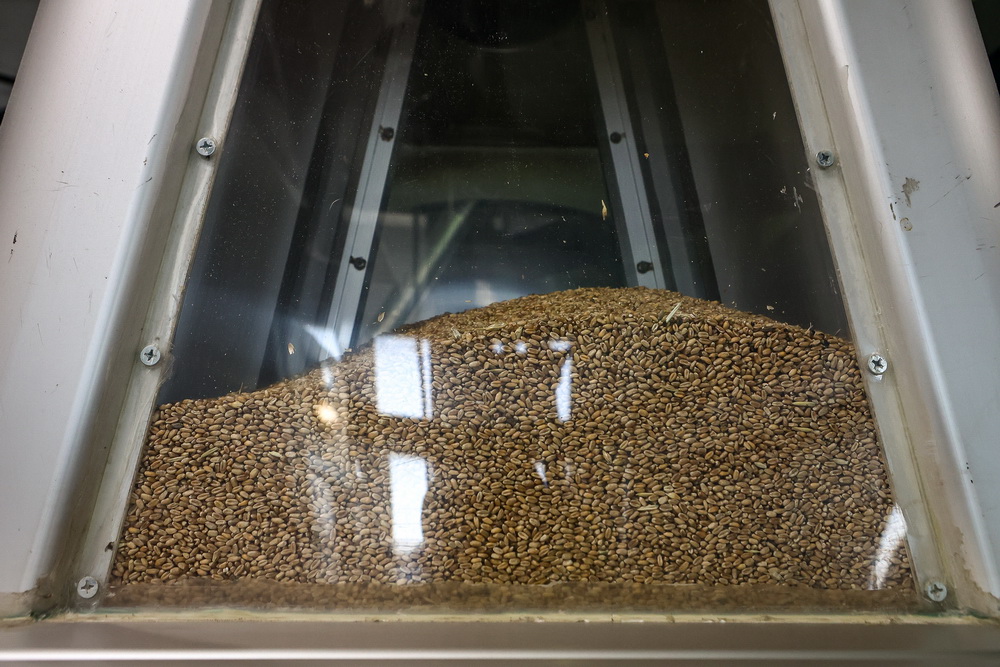На этапе очистки есть три вида бункеров: чёрный, полубелый и белый. Их называют ямами. В чёрную яму попадает неочищенное зерно. Оно проходит через обоечную машину, камнеотборник, сепараторы, избавляется от сорной примеси, твёрдых частиц, от пыли и земли. После увлажнения ложится в полубелые ямы. Там находится 12 часов. За это время влага проходит внутрь зерна. Так его проще размолоть на вальцевом станке. Если оно будет сухое и грубое, то просто расколется и уйдёт в отруби. Когда зерно эластичное, то оно размалывается, а всё, что нужно, из него забирается и идёт в муку.