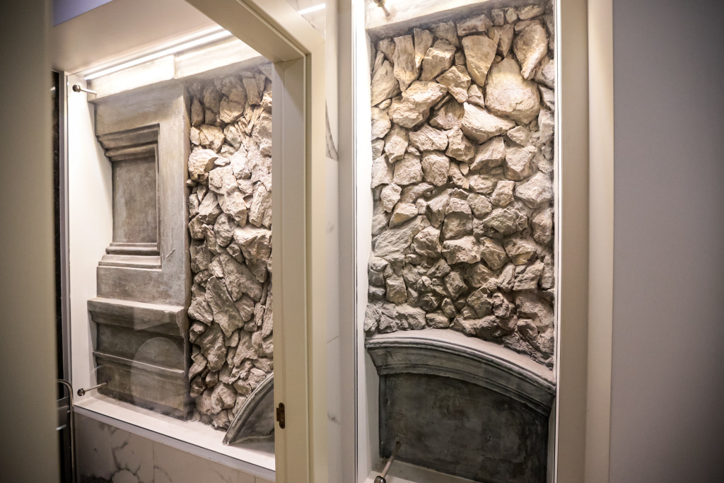 Когда в начале 2000-х затеяли большую перестройку здания, то на втором этаже в правом крыле обнаружили необычную каменную кладку западной «родной» стены. Её решили не заделывать штукатуркой, а сохранили, закрыв стеклом. Находится артефакт в женском туалете, поэтому доступен не всем.