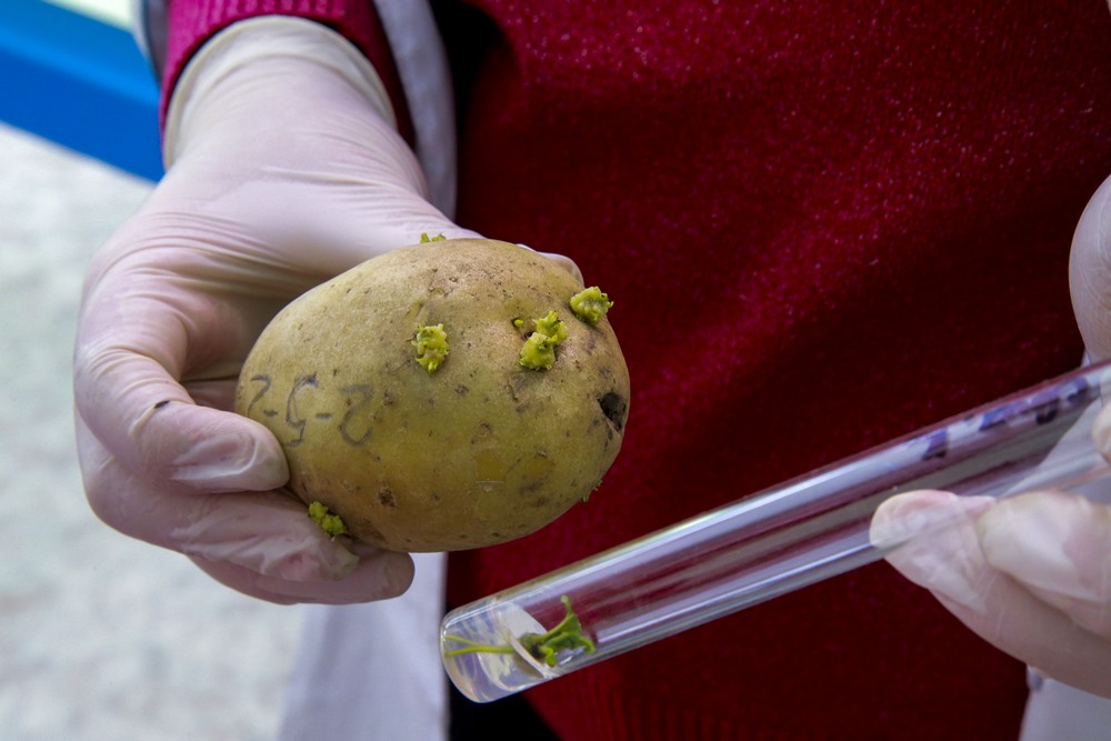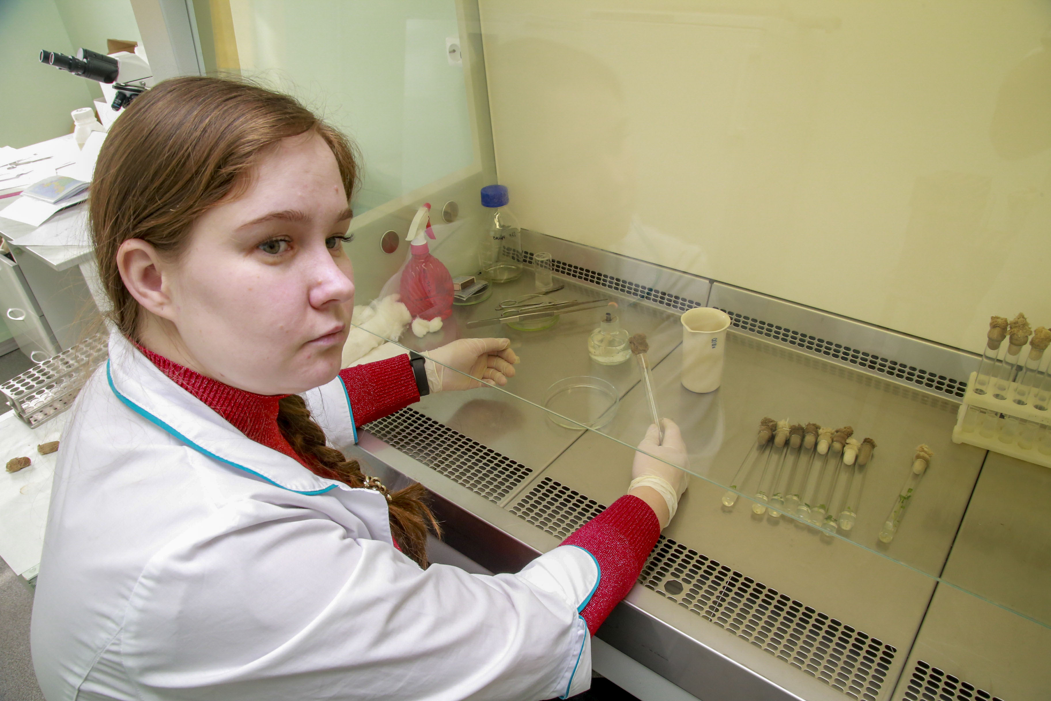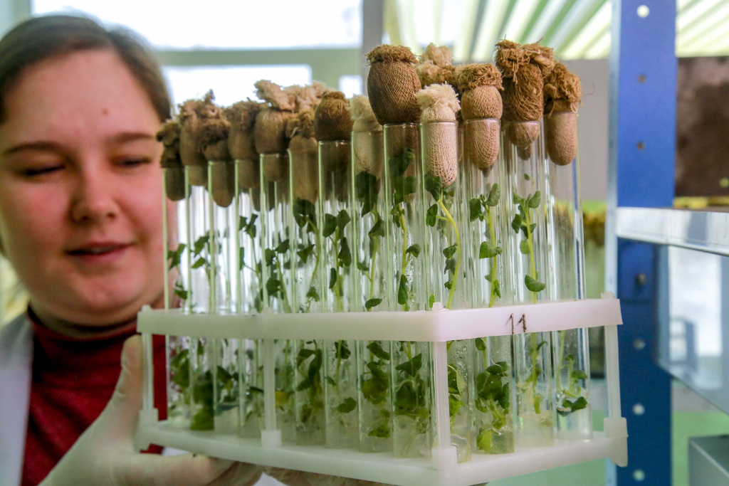 «Маленькие, нежные, зелёные», — о ростках из пробирки аспирантка Кристина Калошина рассказывает с улыбкой. В научной лаборатории Кристина размножает сортовой картофель. Она знает, как один росток превратить в 150 за пару месяцев при помощи скальпеля и питательного геля.
