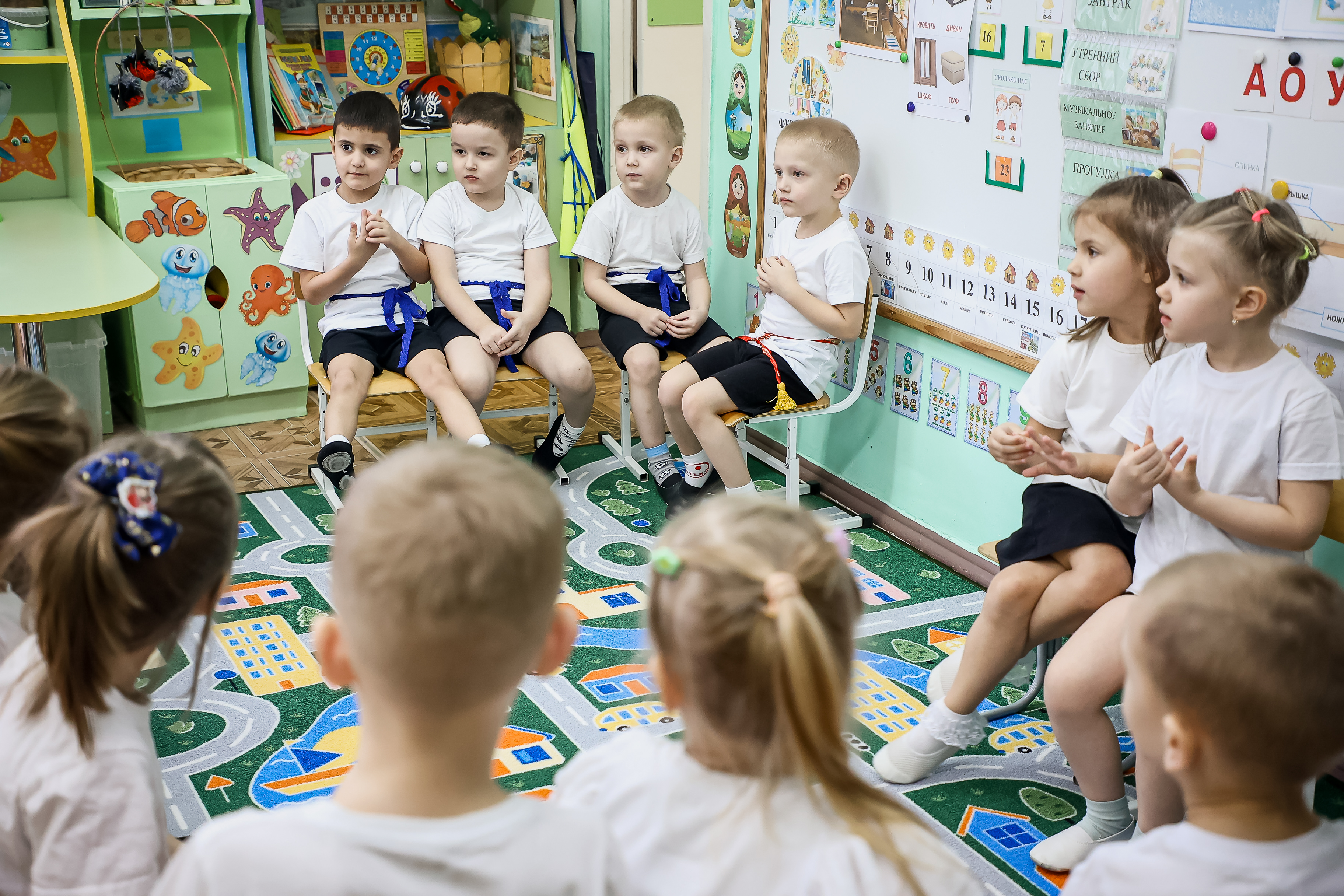 Каждое утро в детском саду начинается с беседы в свободной форме. Особое внимание уделяют детям с речевыми трудностями. Во время нашего визита один из воспитанников уверенно считал сверстников вслух, хотя буквально четыре месяца назад совершенно не знал русского языка. Воспитатели лишь корректировали ребёнка, поскольку он ещё путает женский и мужской род.