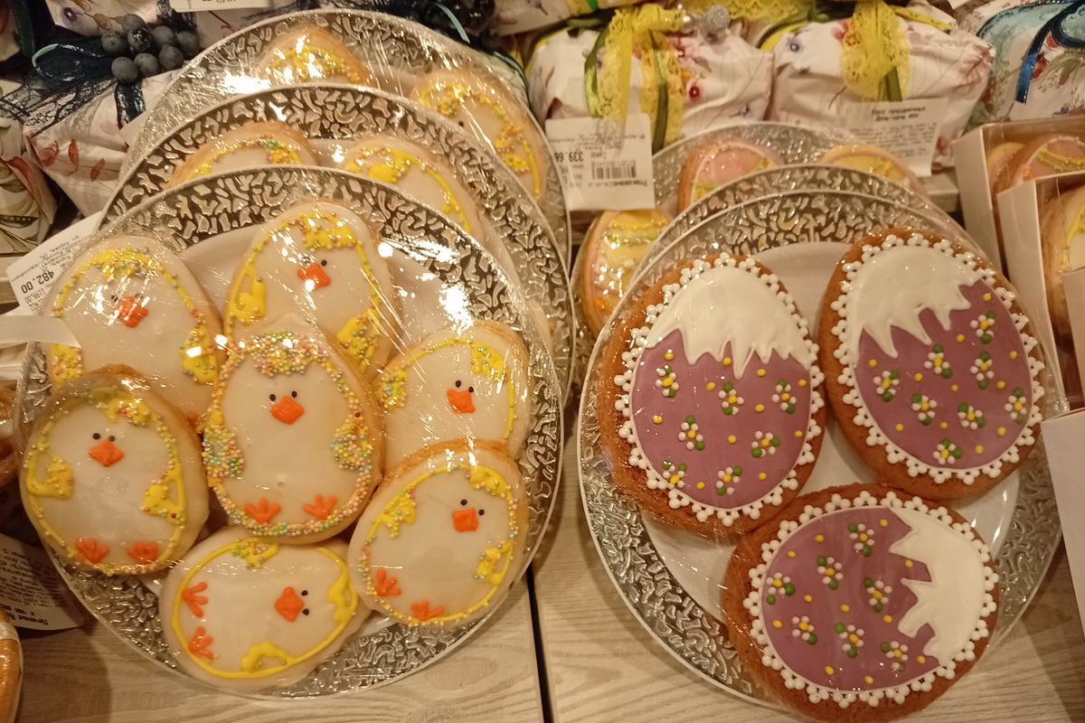 На декоре куличей не экономят кондитеры «Бахетле». Выпечку оформляют шапками крема, крохотными яйцами-крашенками, фигурками кроликов, ангелов и цыплят, блестящей посыпкой. Здесь же можно приобрести и творожную пасху, и праздничные пряники с весёлой раскраской.