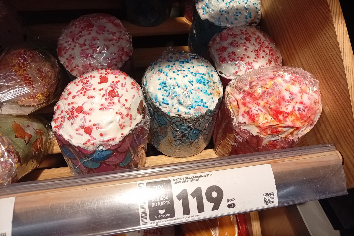 Самые демократичные цены на пасхальные хлеба предлагают сетевые супермаркеты «Пятёрочка», «Магнит», «Ярче». В них можно приобрести выпечку на праздничный стол за 100–300 рублей в зависимости от состава и массы изделия. В кондитерских лавках на станциях метрополитена тоже продают миниатюрные куличики. Там можно взять одну булку или собрать праздничный набор.