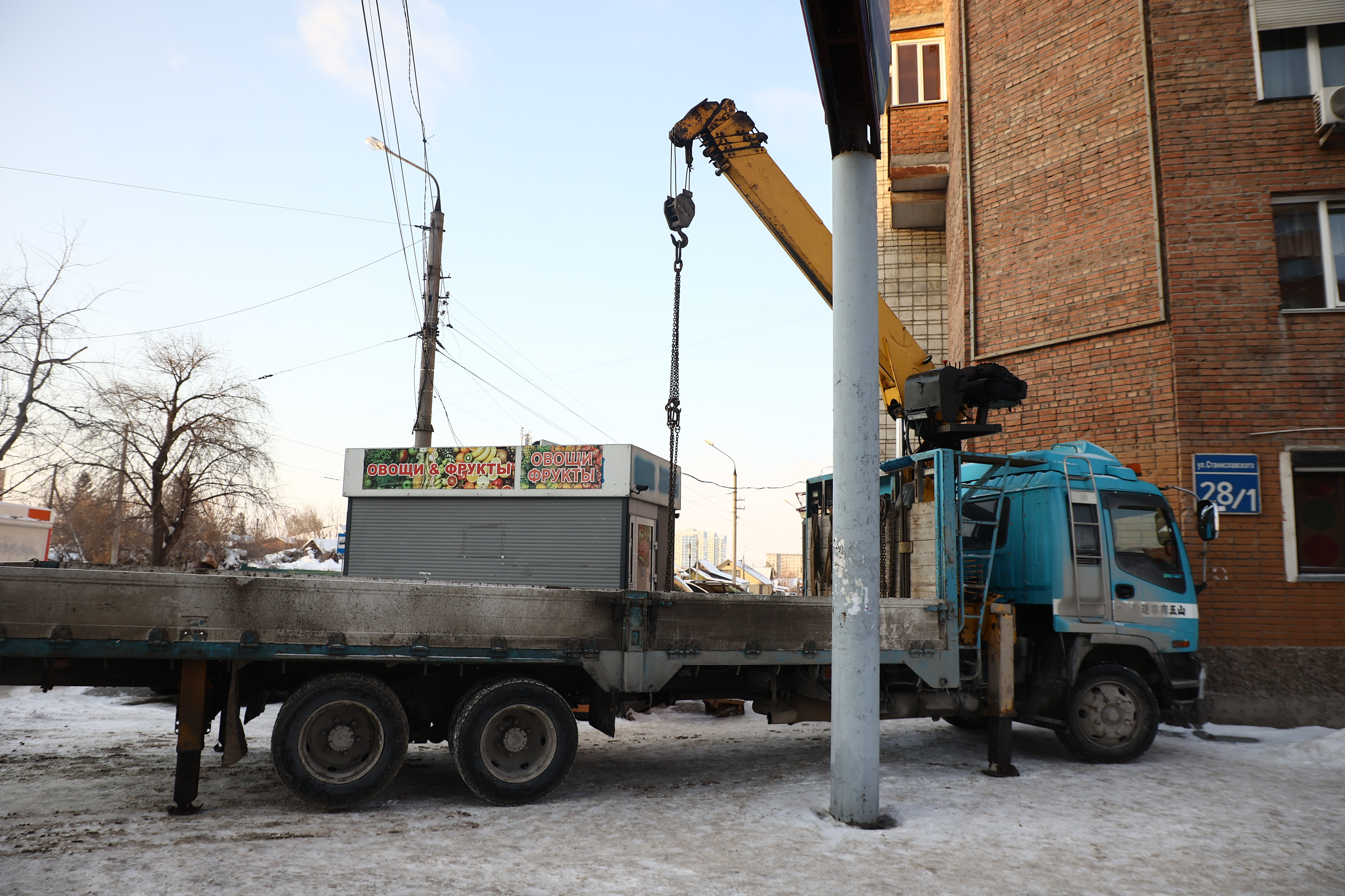 В Ленинском районе Новосибирска убрали ещё один торговый киоск. Он работал рядом с домом на улице Станиславского, 28/1.