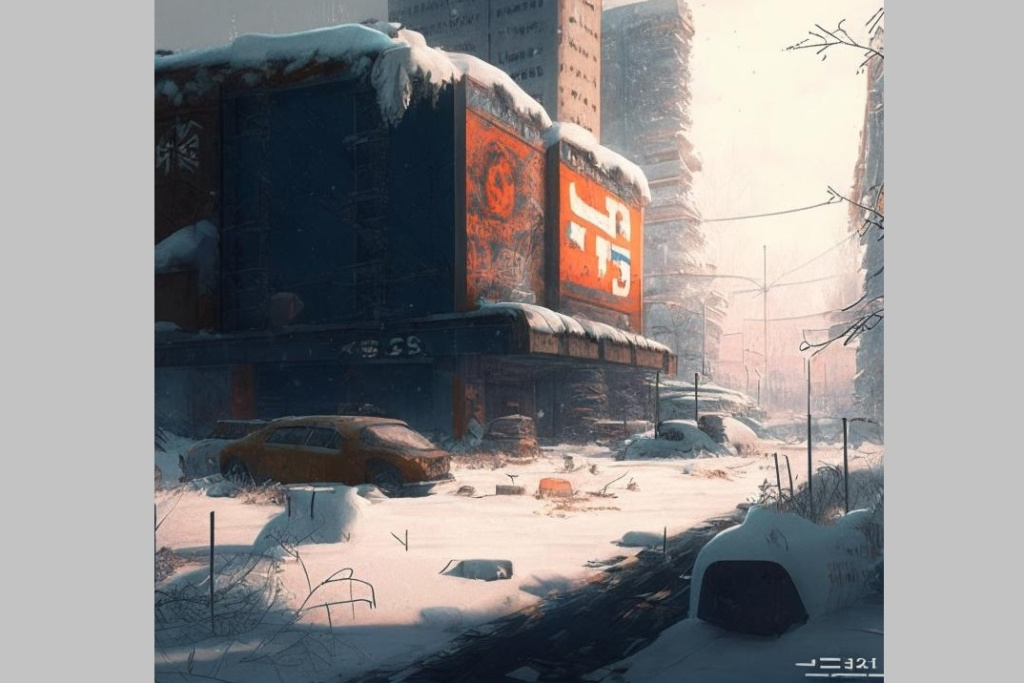 Результат генерации по запросу «Новосибирск-3023» опубликован в сообществе неВасилий Kandinsky в соцсети «ВКонтакте». Судя по картинке, наш город через тысячу лет будет выглядеть очень апокалиптично: вокруг ни души, дороги заметены сугробами, и по ним давно никто не ездит. Возможно, просто зимы станут холоднее, и в это время года люди будут редко выбираться на улицу.