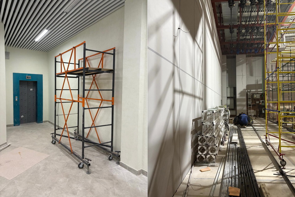 По информации городского департамента строительства и архитектуры, на 2-4-м этажах отделочные работы уже завершили. Помещение окрасили, установили внутренние двери, закончили с полом. К финалу приближается отделка зрительного зала на 350 мест, там обустроили сцену и скоро начнут укладывать паркет.