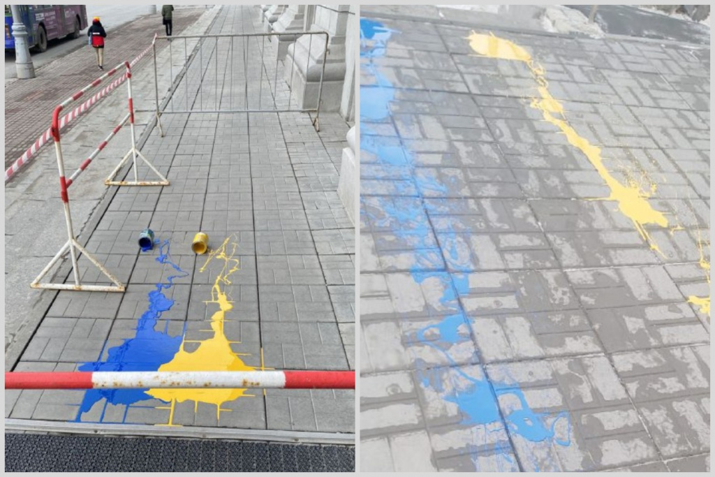 Новосибирец заплатит штраф за разлитую у мэрии синюю и жёлтую краску
