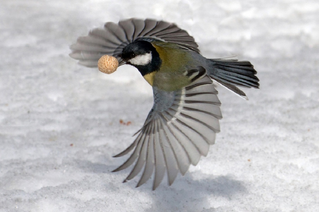 Бёрдвотчер Андрей Черных подкармливает птиц регулярно. Поясняет, что синицы особенно любят сало и семечки. У ещё у этих пернатых специфическая манера полёта: синица очень редко взмахивает крыльями. Взлёт и нырок вниз красиво получаются на фото.