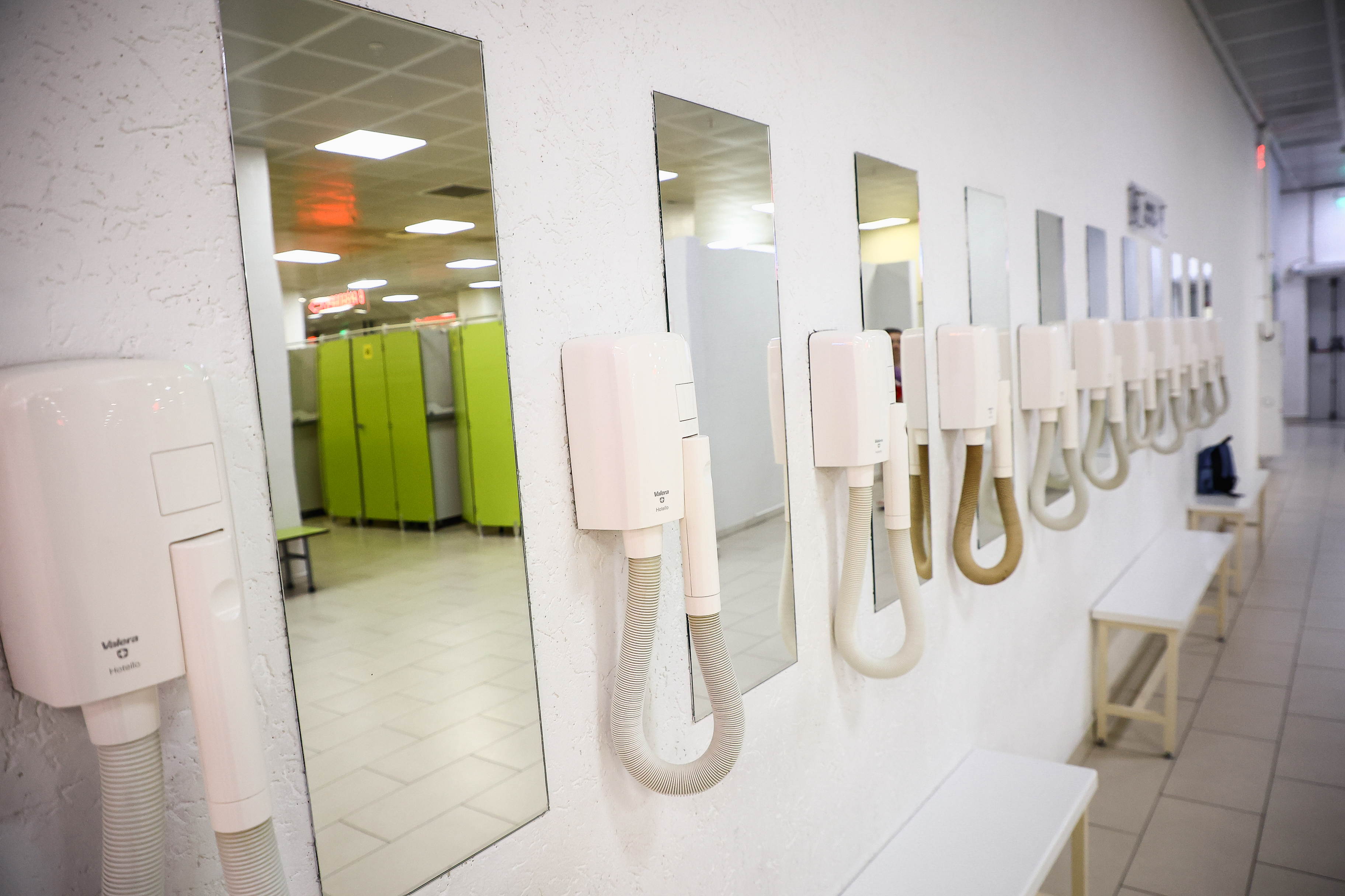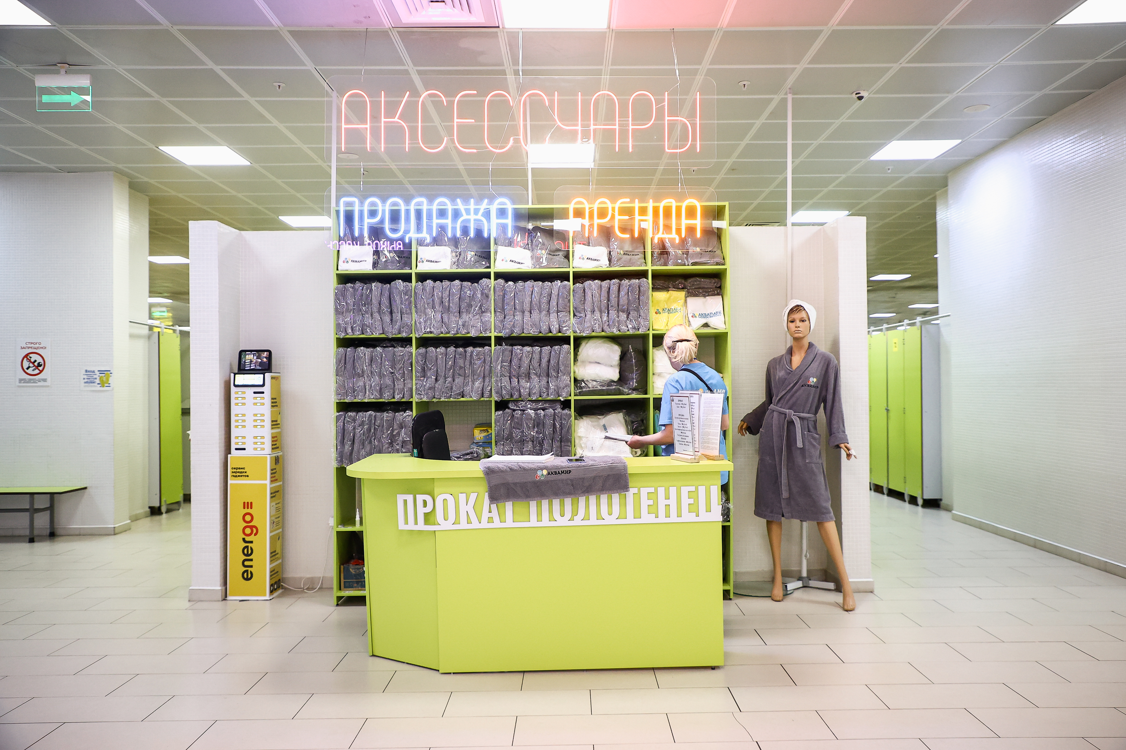 Если забыли дома полотенца, их можно взять напрокат или купить на специальной стойке. Фены брать с собой в аквапарк нет необходимости — здесь их предостаточно.