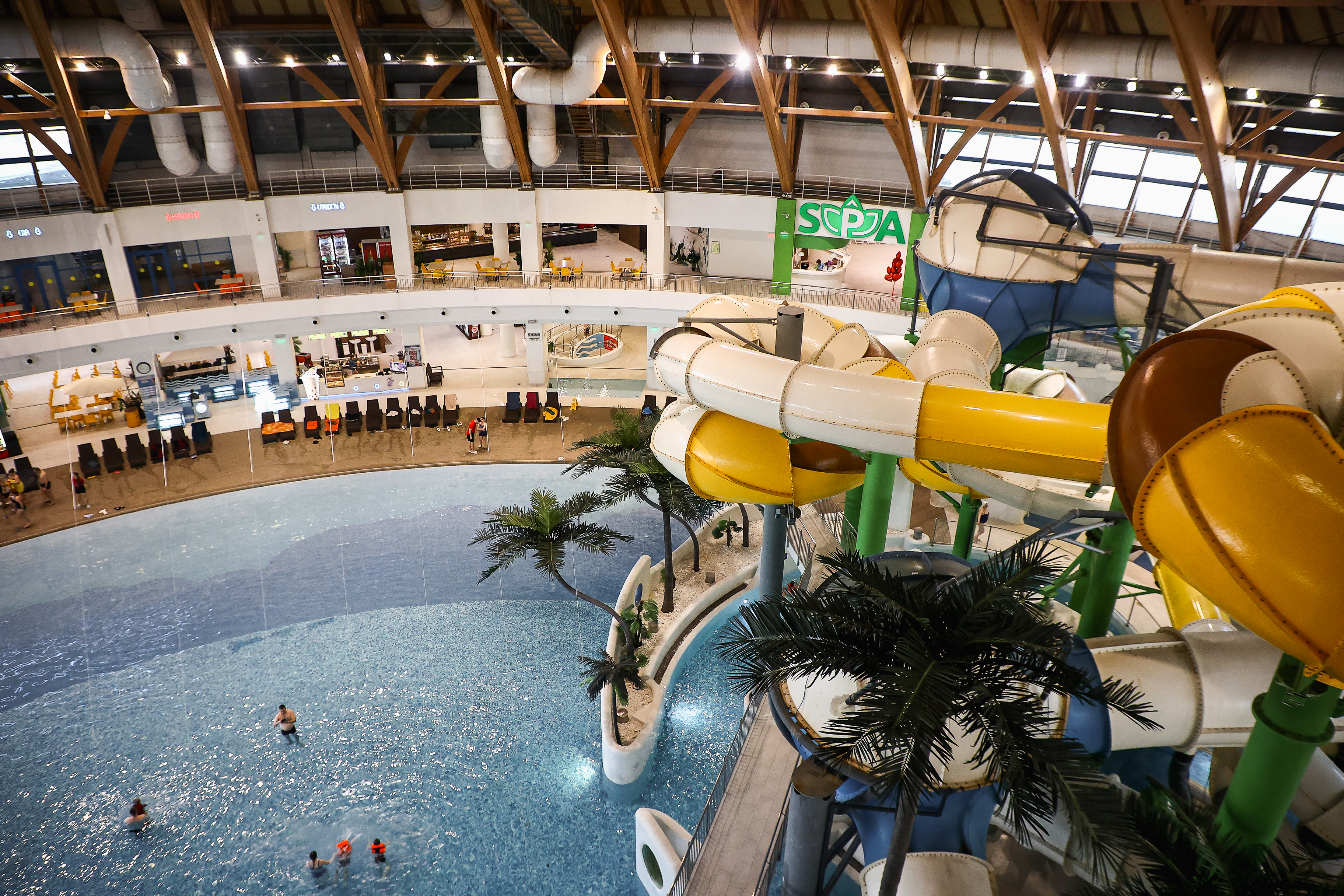 После всех «активностей» многие хотят перевести дух и расслабиться. Поэтому дальше возможно пройти в термальный комплекс. Ароматические и соляные бани, панорамные и гидромассажные бассейны, джакузи, термы, уличные купели уже включены в стоимость посещения.