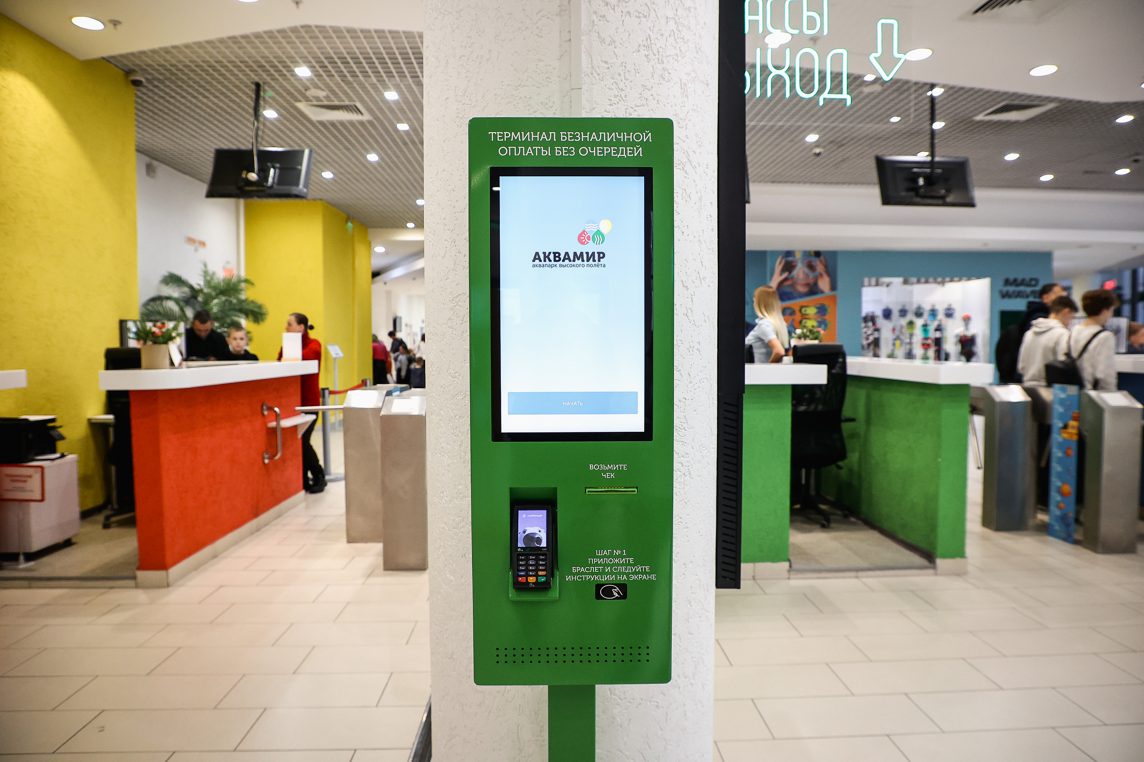 После оплаты вам выдадут электронный браслет. Это ваш ключ: с его помощью можно закрывать ячейку в раздевалке или рассчитываться в кафе. В браслете установлен цифровой лимит. Обычные карты или наличка внутри не работают. Всё, что потратите в аквапарке (на еду, напитки, спа-услуги), оплачиваете в конце отдыха здесь же, на кассе.