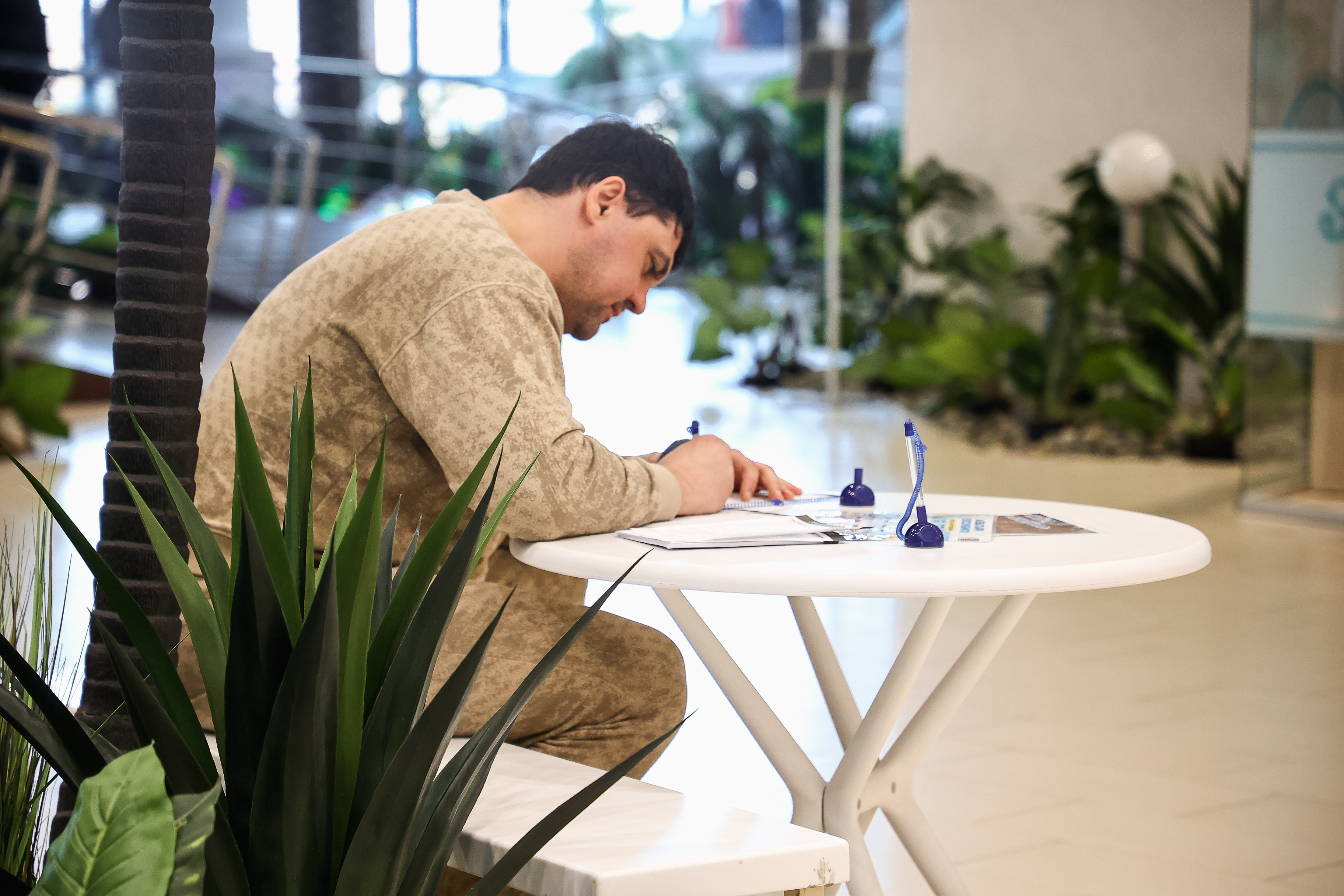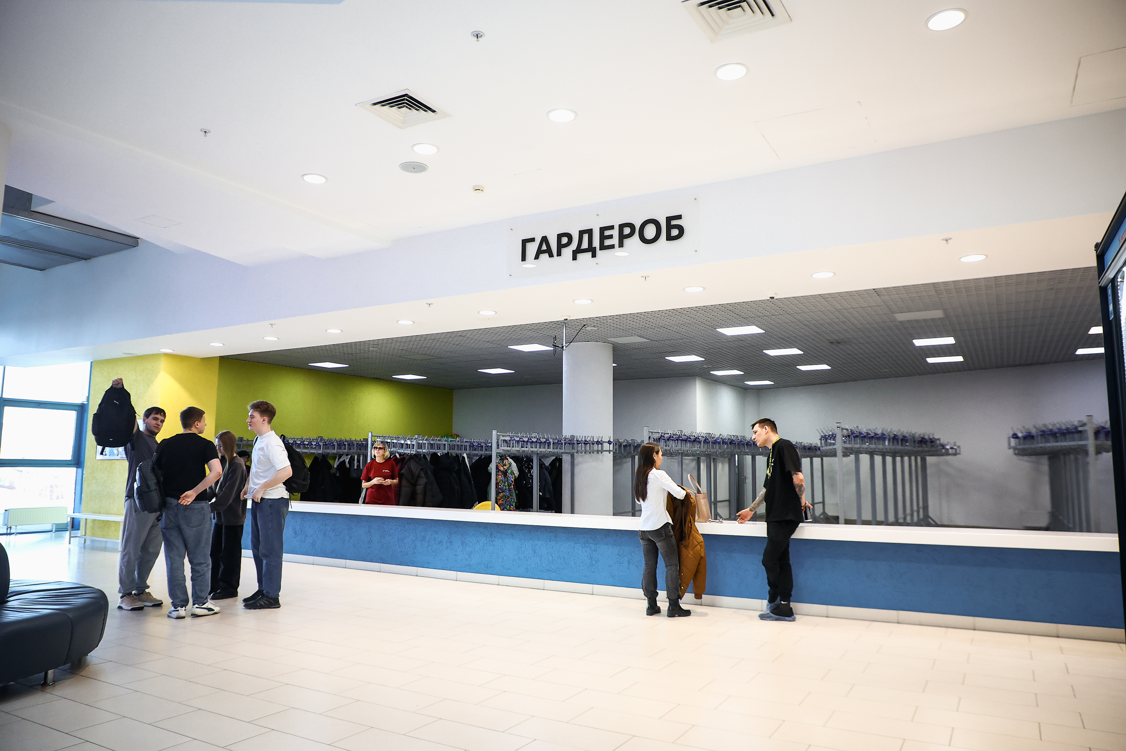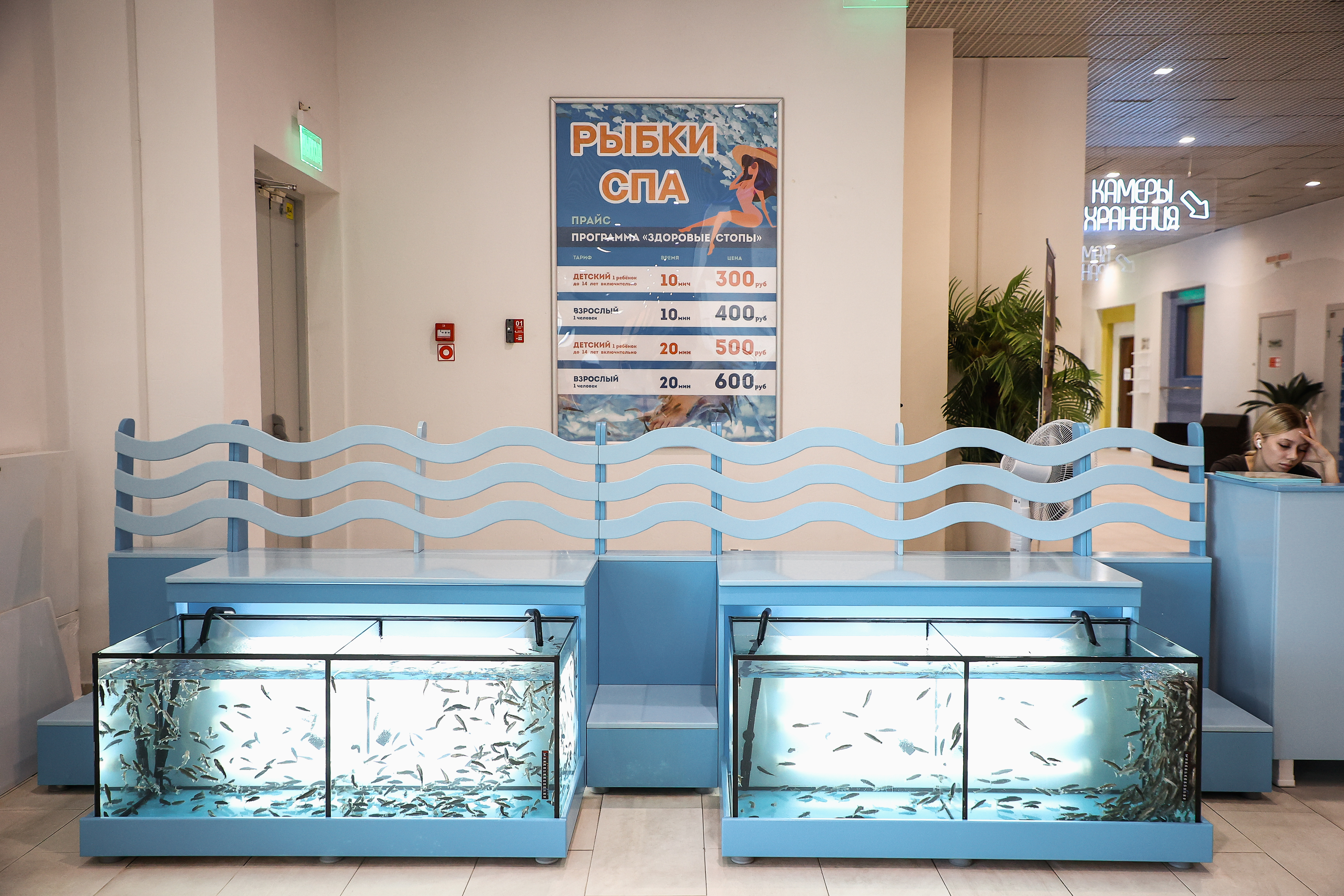 В фойе можно осмотреться: здесь есть кофейня, несколько фотозон и лавки с пляжными принадлежностями и сувенирами. Для маломобильных посетителей предусмотрены коляски и специальный лифт.