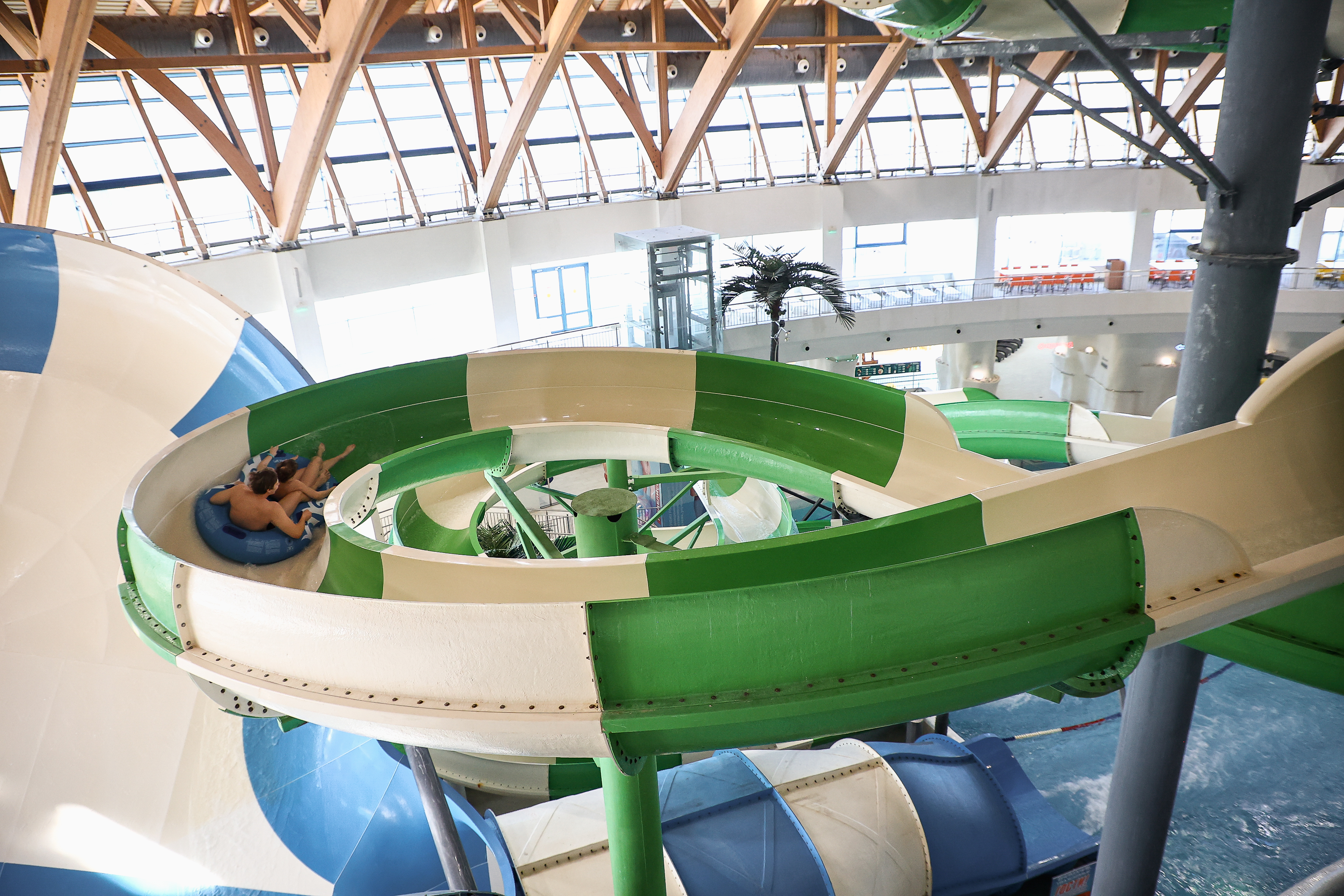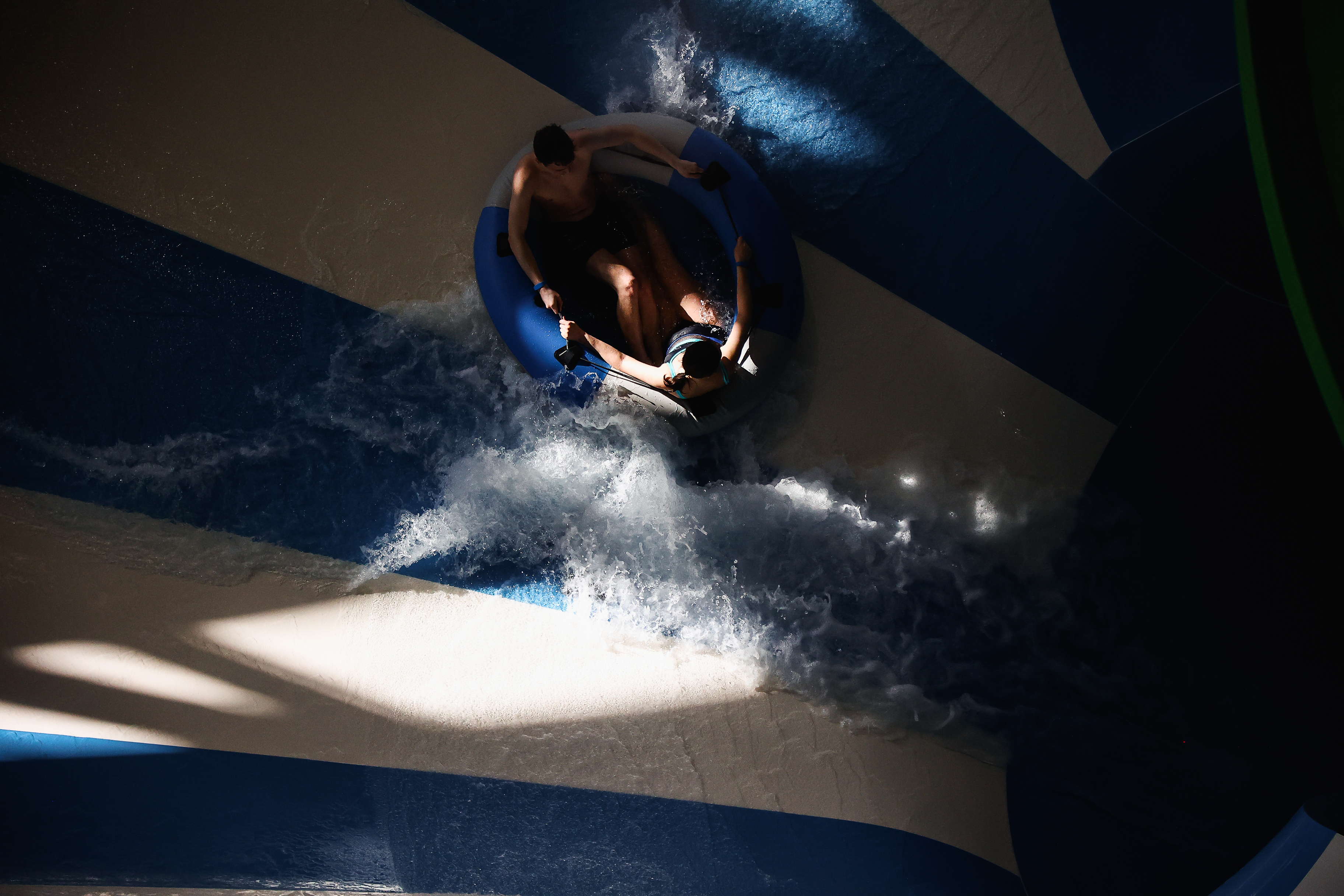 Очереди к этой горке всегда большие. В мире таких аттракционов в крытых аквапарках всего два: один находится в Японии, второй — у нас. Фишка его в том, что сначала вы катитесь по тёмному жёлобу, а потом вылетаете в огромную чашу с эффектом свободного падения.