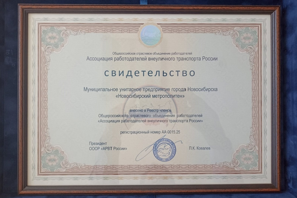 Новосибирский метрополитен вступил в Ассоциацию работодателей внеуличного транспорта (АРВТ). Она объединяет все российские подземки, а также завод по выпуску вагонов, профильные учебные заведения и научно-исследовательские компании.