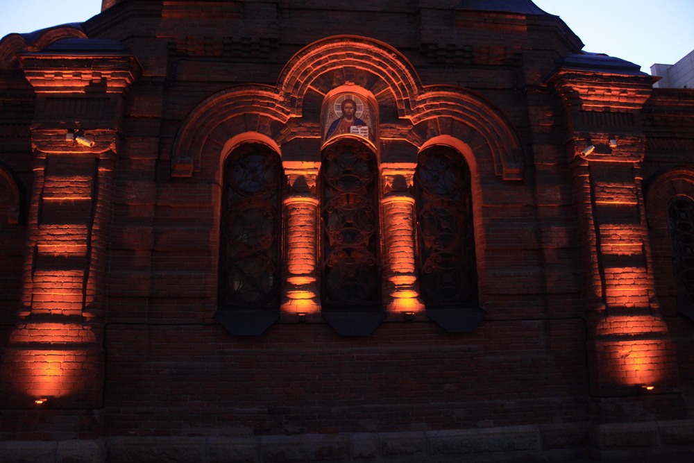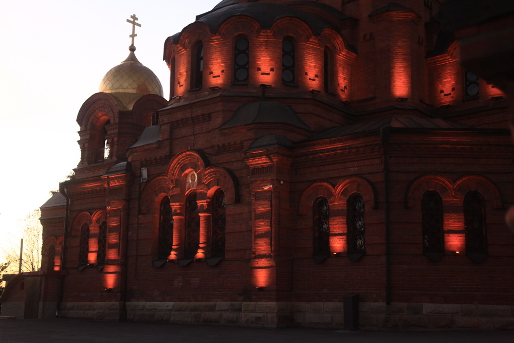 «Светодиодной техники тогда ещё не было. На соборе святого князя Александра Невского поставили около 60 металлогалогенных ламп с потреблением каждой по 70 ватт. Нагрузка на сети была серьёзной. В какой-то момент подсветка пришла в негодность. Но, поскольку для города, прихожан и лично меня это очень важный объект, первая каменная церковь в городе, я сам инициировал восстановление. Изготовили новую рабочую документацию. С настоятелем храма согласовали, что будем восстанавливать свет таким, как он был задуман 20 лет назад. Реализовывали реновацию совместно с бюро светодизайна Максима Шурица, они помогали с подбором оборудования и выполняли монтаж», — поясняет Сергей.