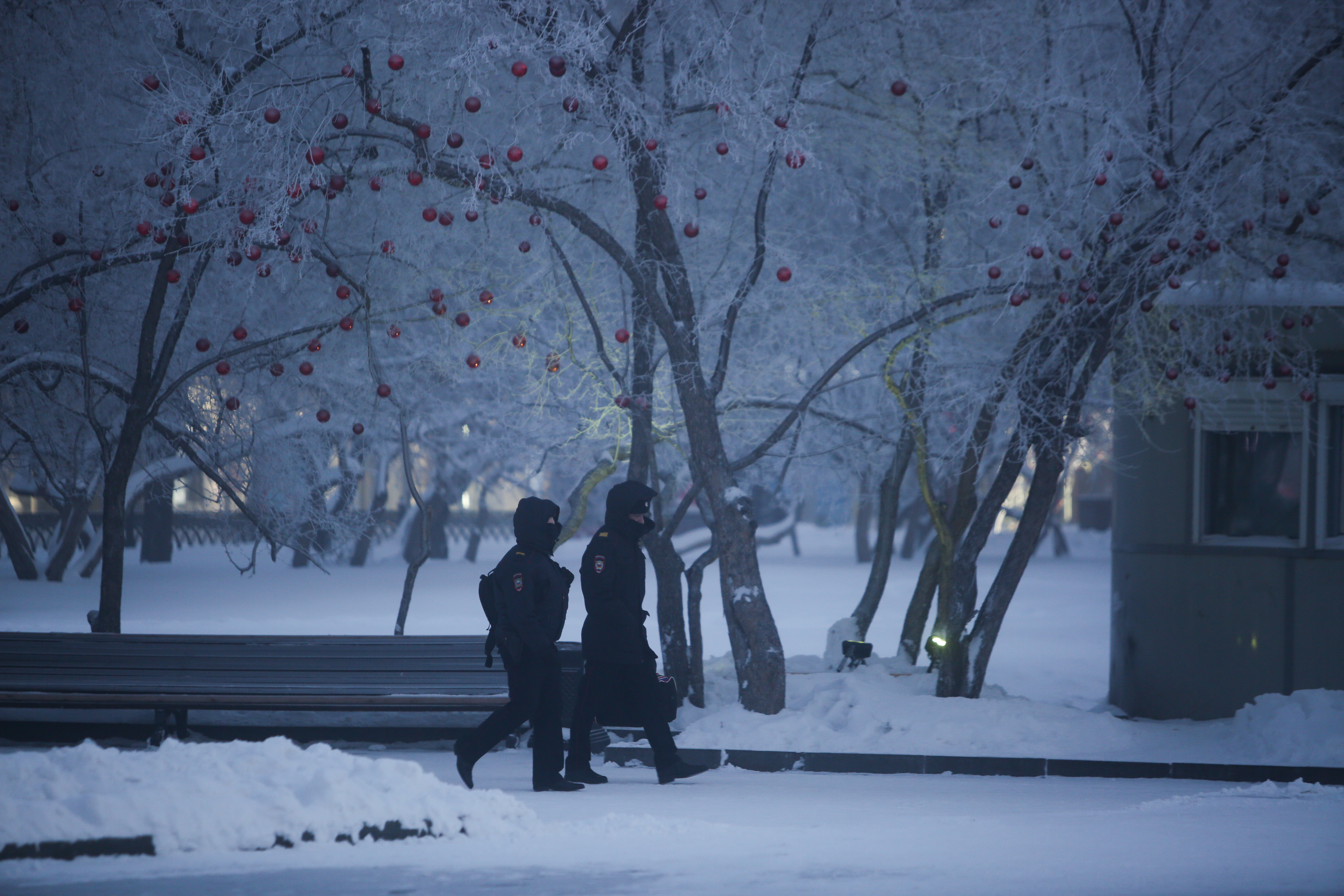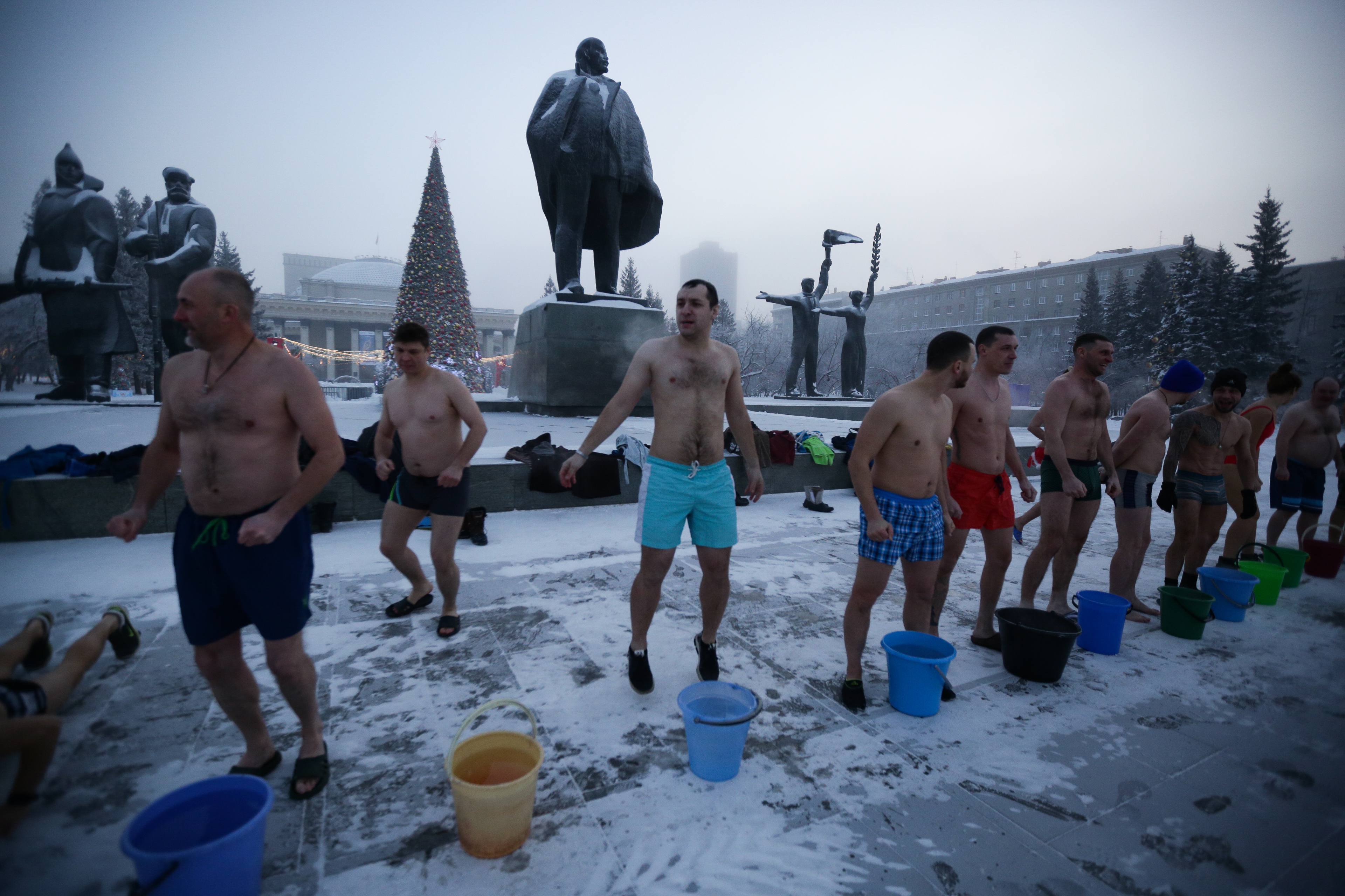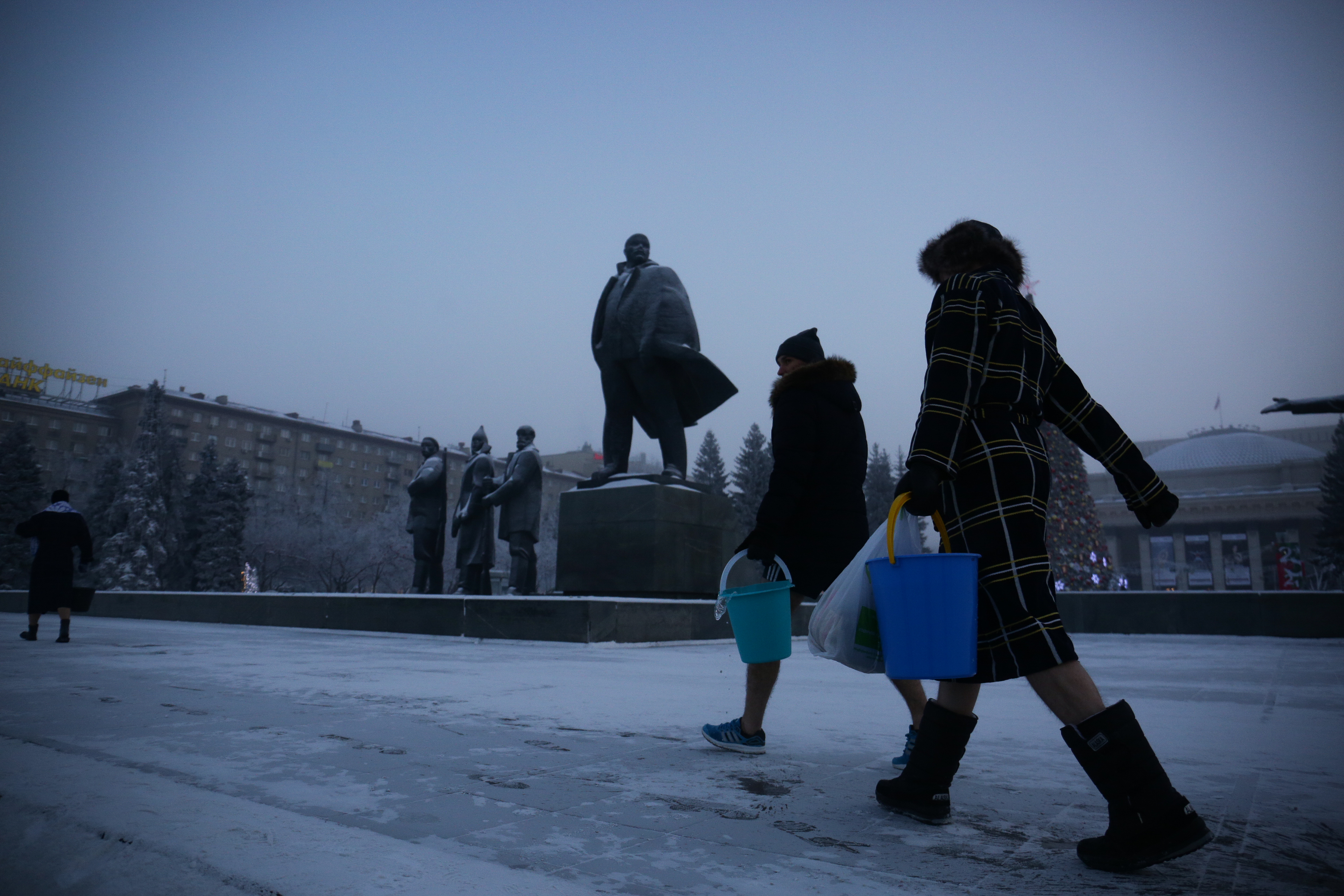 Новосибирцы облились водой на площади Ленина в скрипучий мороз