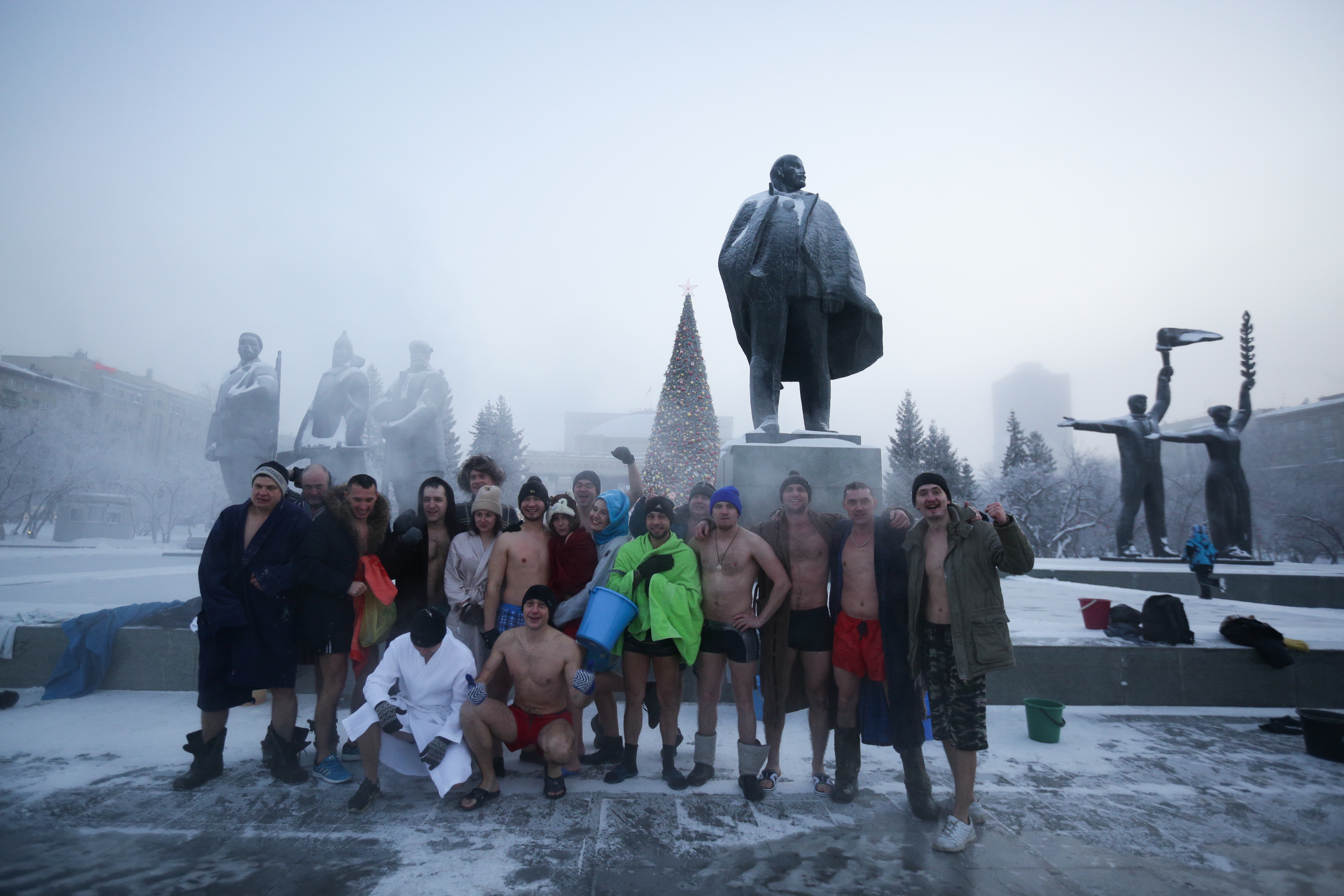 Обливаются экстремалы на площади Ленина регулярно — уже третий год. Каждое последнее воскресенье декабря.