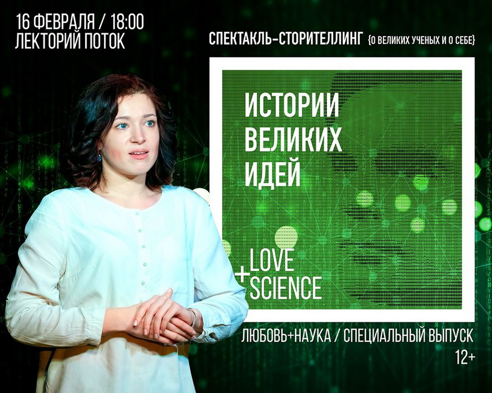 Со сцены прозвучат истории, посвящённые не только науке, но и самому главному чувству на Земле. Актёры расскажут, как любовь помогла сделать великие научные открытия, а то и стала их причиной. Речь пойдёт о любви к человеку, науке, миру, о любви, которую сложно описать формулами.