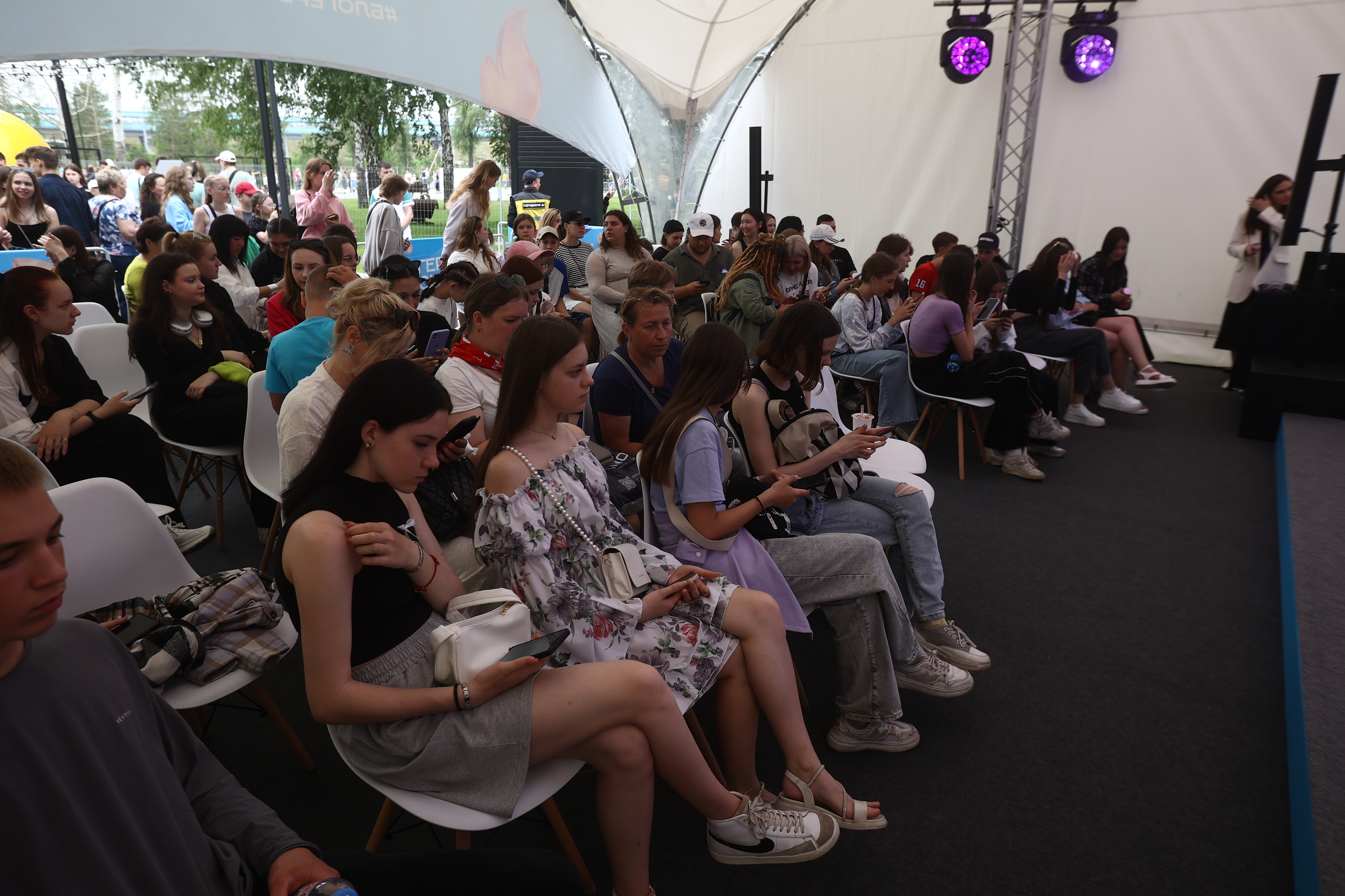 Многотысячная толпа собралась возле «Сибирь-Арены» на фестиваль «Блогеры России». Гости разделились по интересам: одни прогуливаются, другие покоряют скейт-площадку, третьи рисуют картины-аффирмации, четвёртые снимают клипы для «ВКонтакте».