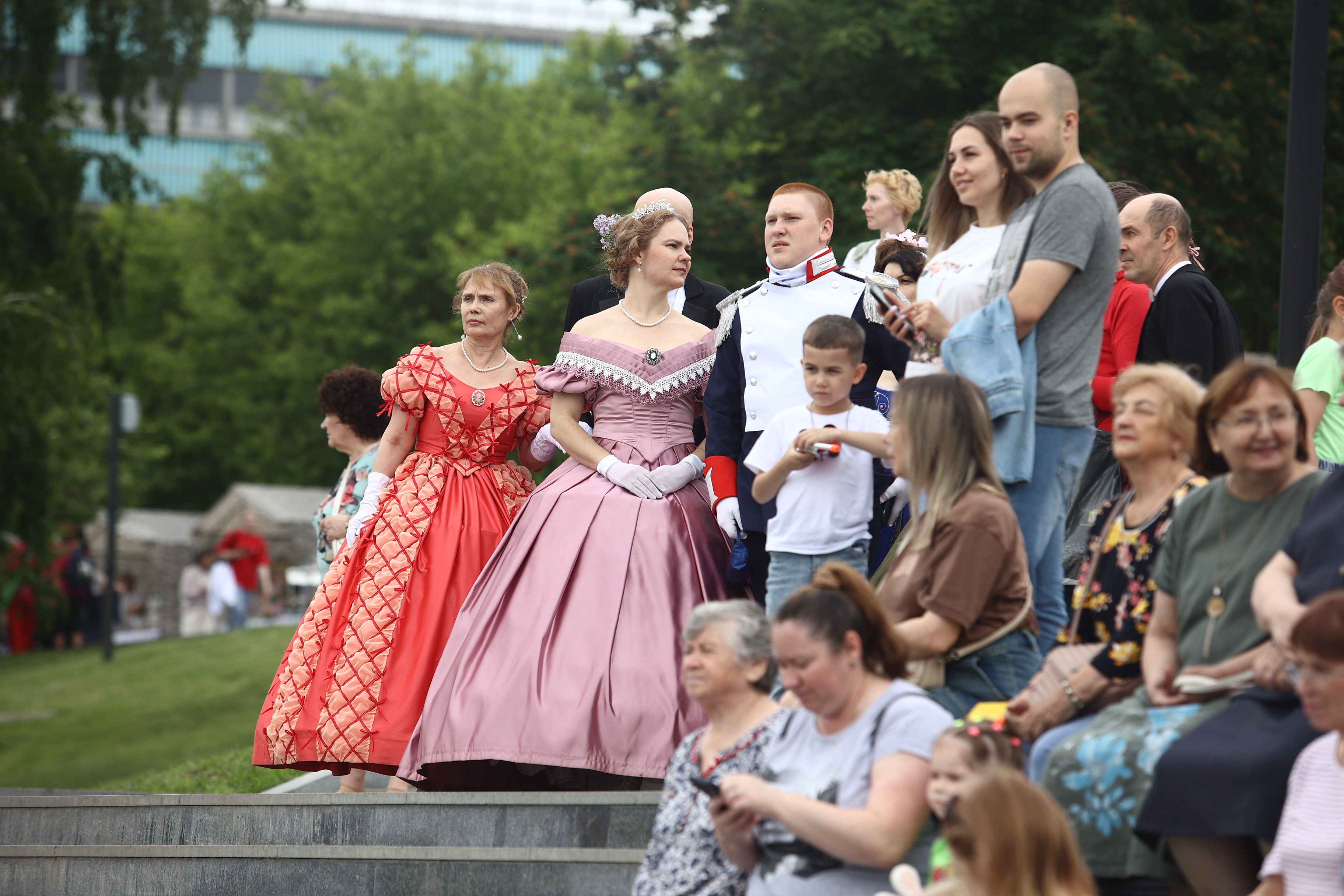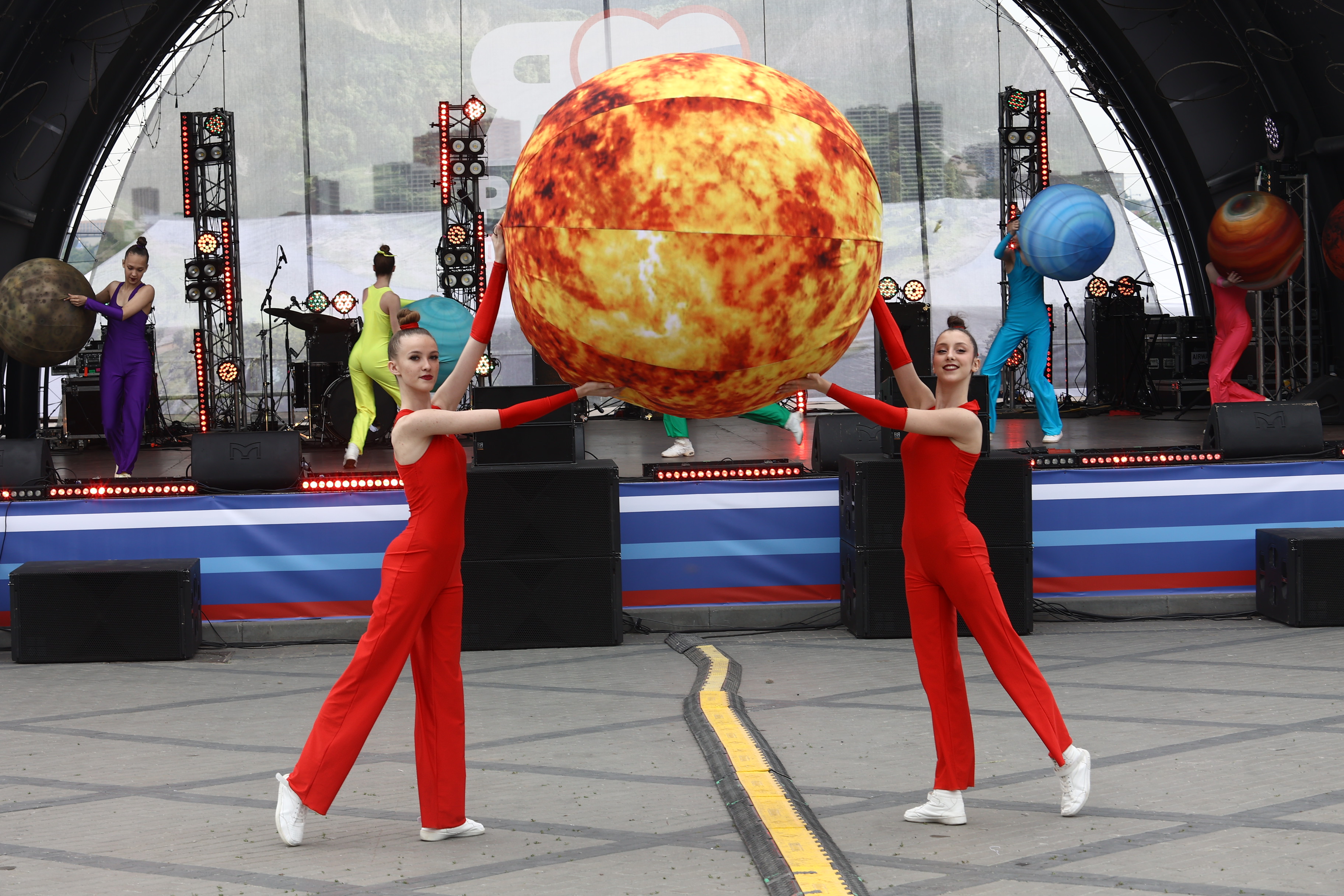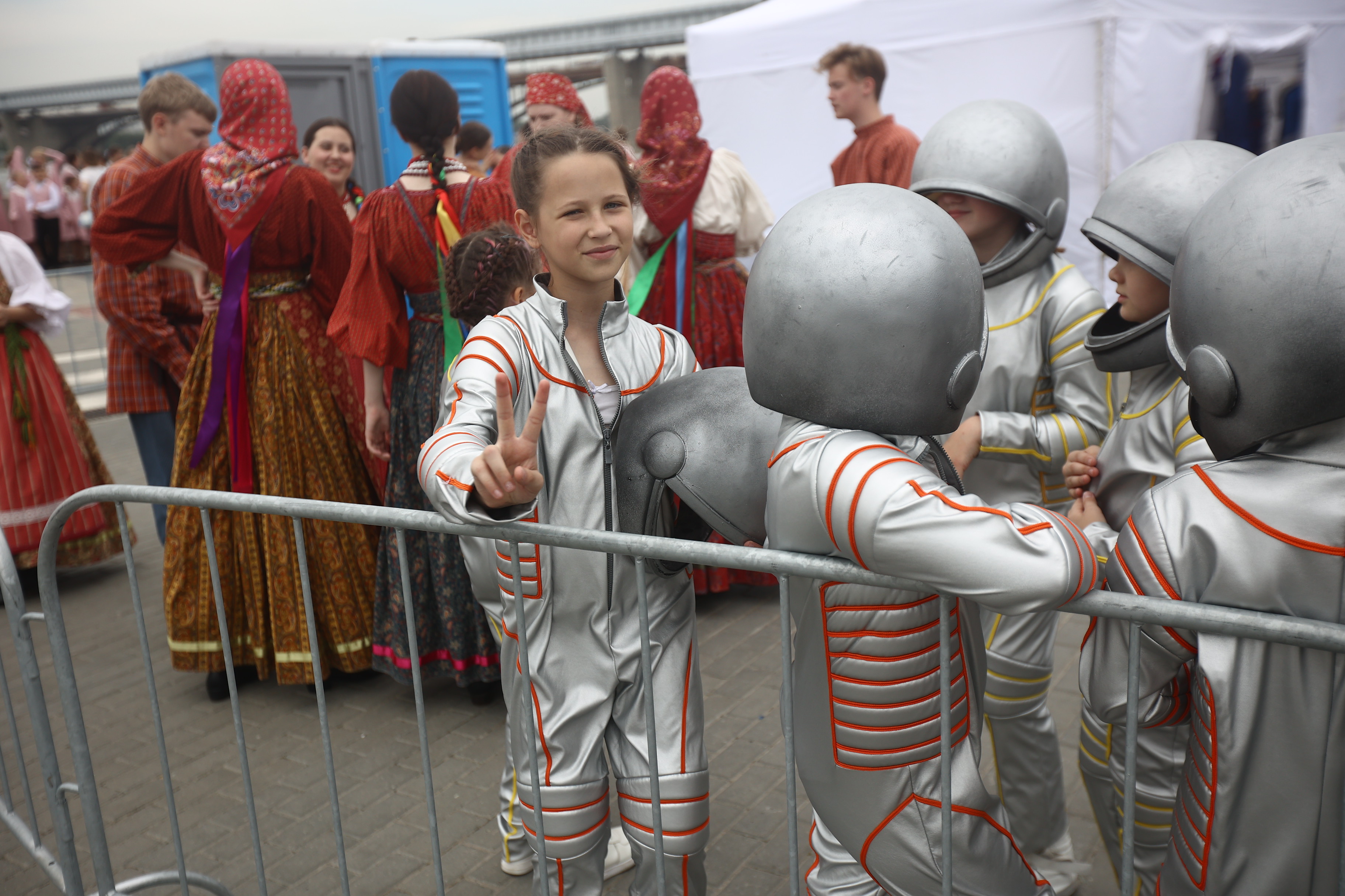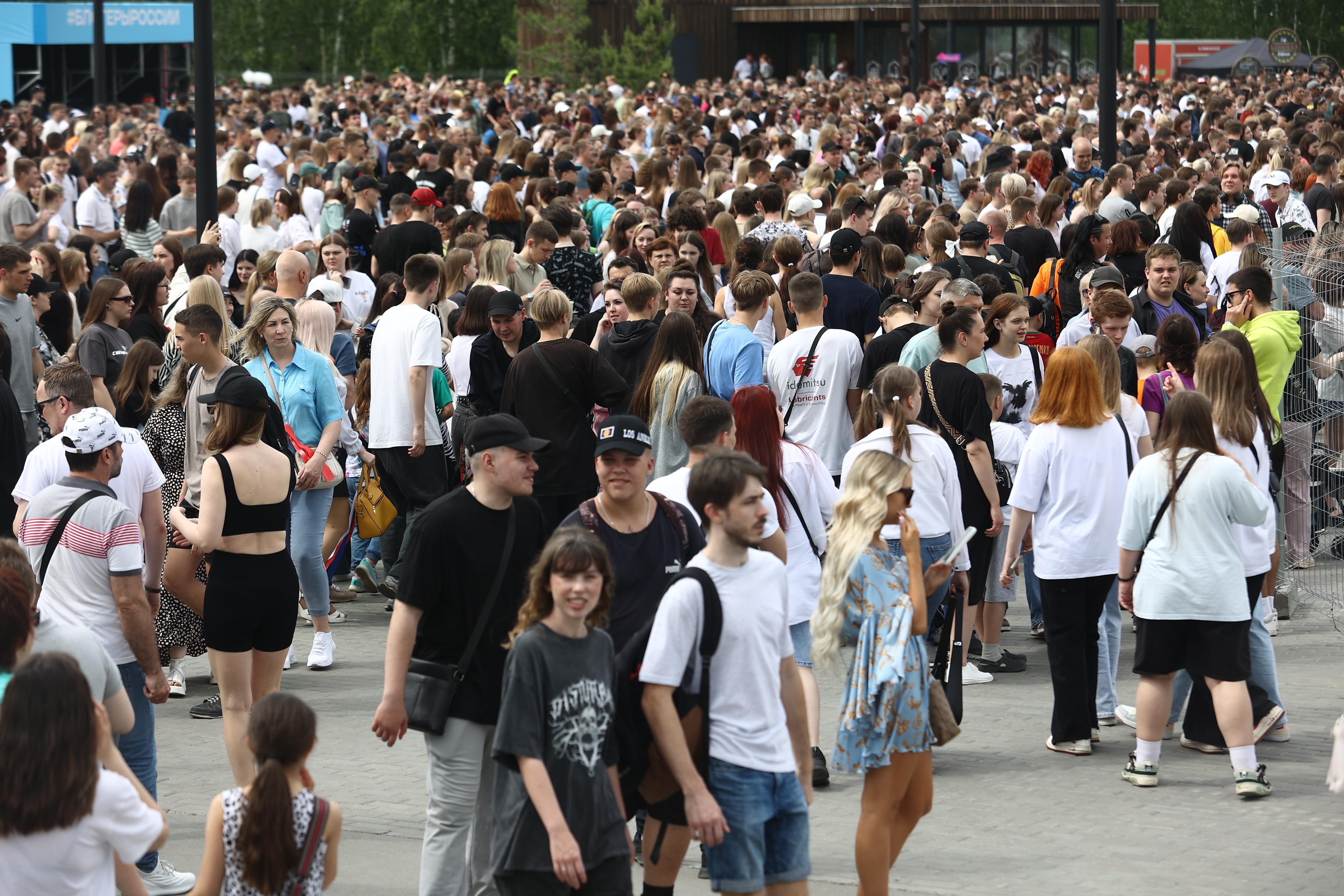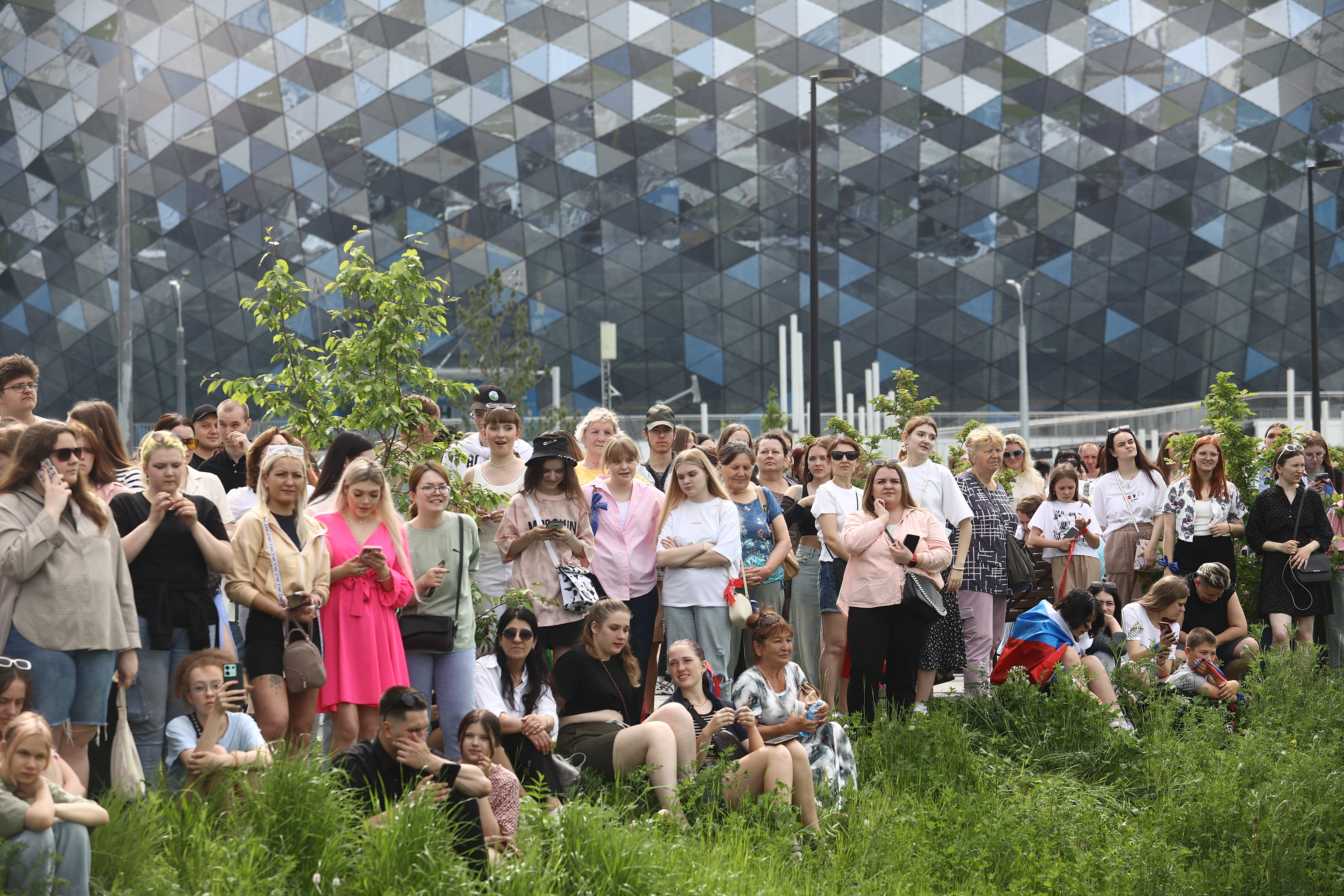 На набережной шумно и многолюдно, но это праздничное оживление — звучат «Земля в иллюминаторе», «И вновь продолжается бой». Гости, увлекаемые звуками, приближаются к главной сцене и занимают места, снимают видео и делают селфи.