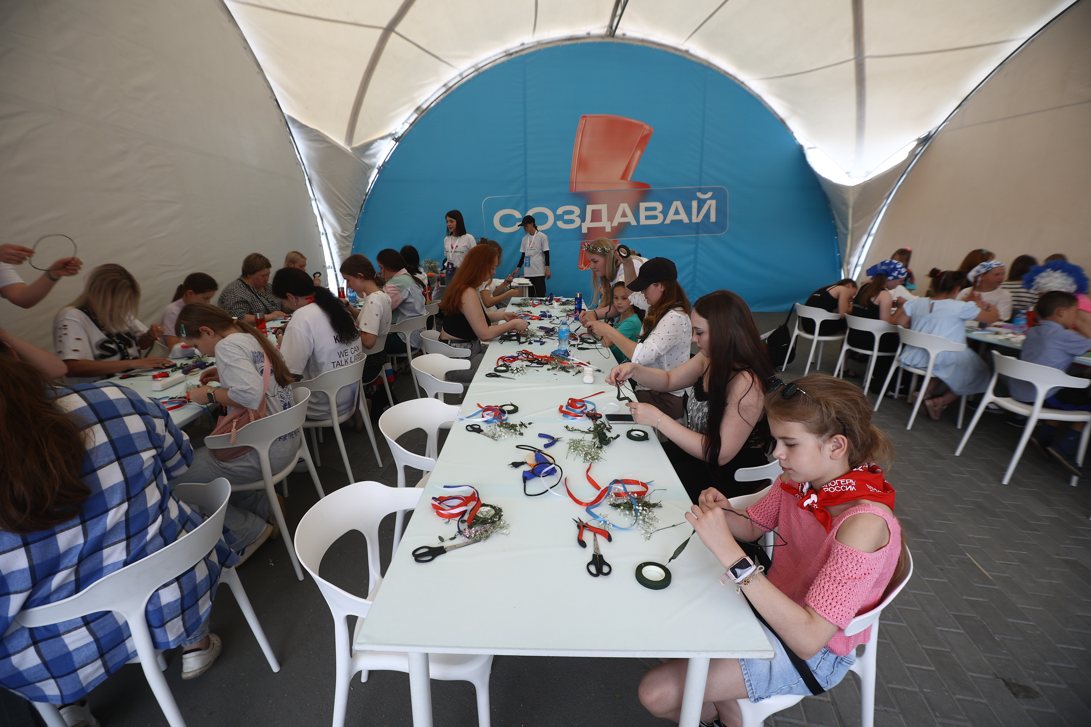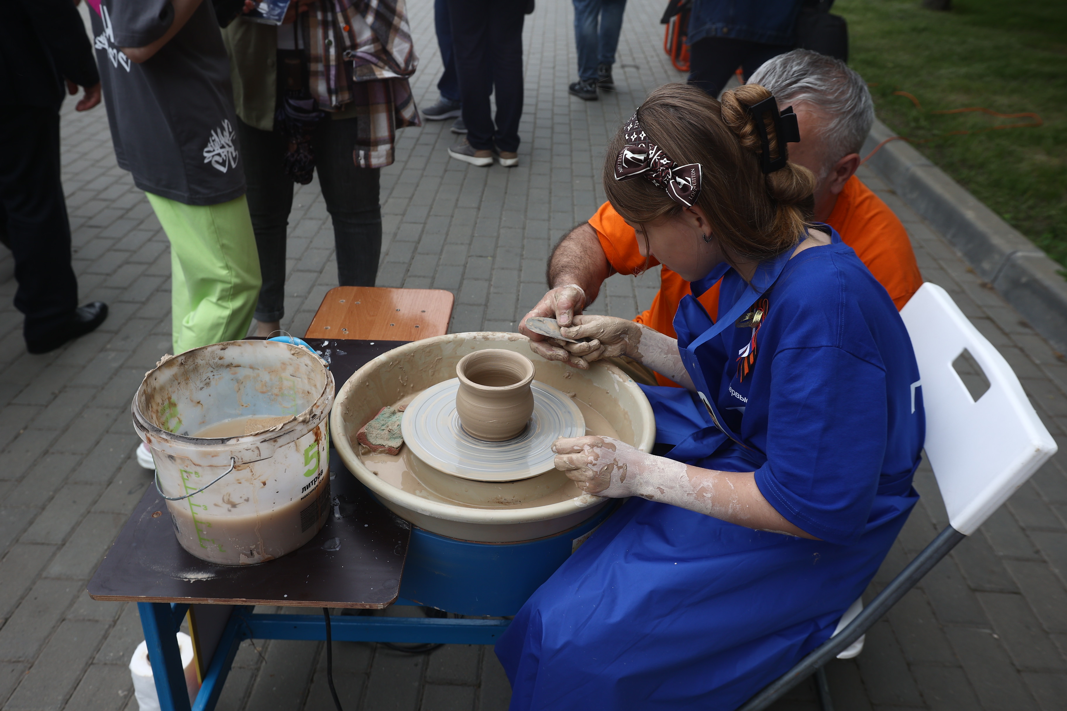 Помимо культурной программы, на набережной развернули интерактивные площадки. Например, горожане смогли рассмотреть вблизи военную форму участников СВО, потренироваться в лепке из глины и сделать памятные сувениры.