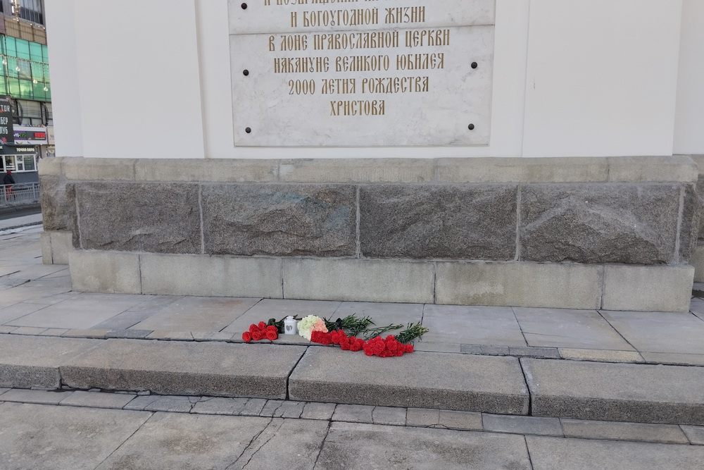 Новосибирцы несут цветы к часовне на Красном проспекте