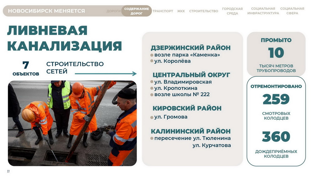 В рамках бюджетных возможностей ведём строительство новых сетей ливневой канализации, в прошлом году работы проводились на семи объектах. Параллельно актуализируем муниципальную и инвестиционную программы развития. Учитываем плотность застройки, обращения жителей и предложения районных администраций.