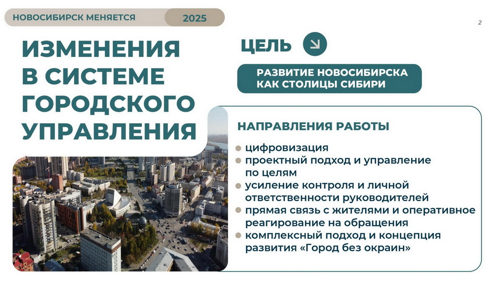 Мы стали первым городом. который перешёл на управление по целям в секторе госслужбы. Этот подход мы используем уже второй квартал. Пока это коснулось руководящего состава. Это серьёзно персонифицирует личностный контроль и ускоряет реализацию проектов.