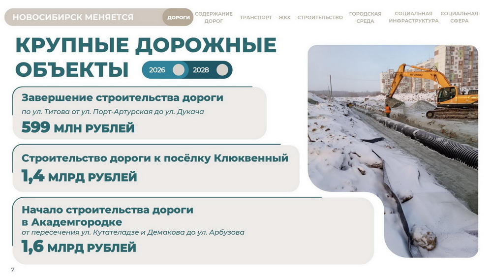 На особом контроле — реализация капиталоёмких проектов: новых дорог на улице Титова от Порт-Артурской до Дукача и к посёлку Клюквенный. Работы идут поэтапно, ожидаемый срок реализации — 2028 год. В случае предоставления средств из вышестоящих бюджетов на этот год мы готовы завершить строительство быстрее.