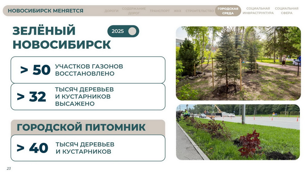 Волонтёры, общественники и юридические лица добавили 10 000 саженцев. Более полумиллиона цветов в Новосибирске мы высадили для наших женщин. Эту практику мы будем продолжать.