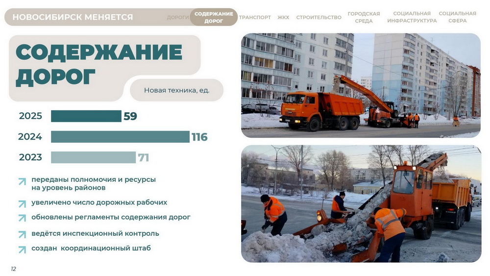 Что касается уборки территорий, содержания дорог, тротуаров и газонов — перестроены подходы к управлению: переданы полномочия и ресурсы на уровень районов, увеличено число дорожных рабочих, введены новые регламенты содержания улиц.