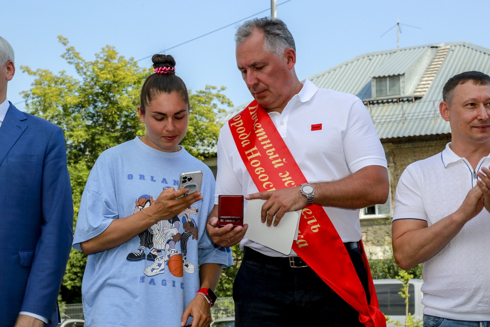 Также в честь юбилея Новосибирска мэр вручил памятный знак «За труд на благо города» трёхкратному победителю Олимпийских игр Александру Карелину.