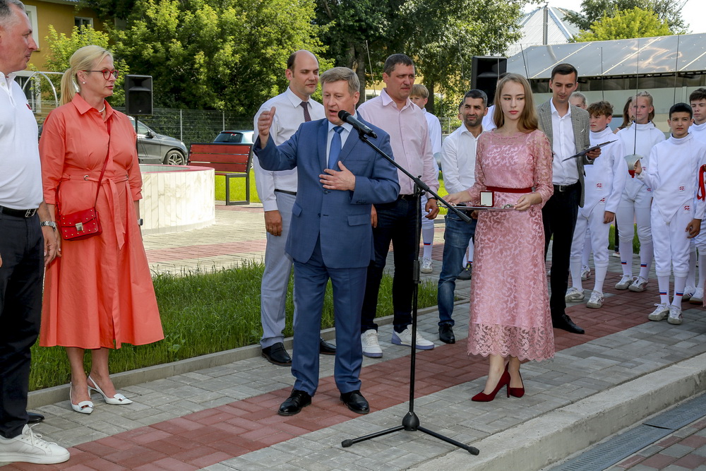 Фонтан в честь заслуженного тренера России Бориса Писецкого открыли сегодня, 2 августа, на территории Сибирского регионального центра фехтования. Поздравить наставника приехал его самый титулованный воспитанник — четырёхкратный победитель Олимпийских игр по фехтованию, ныне президент Олимпийского комитета России Станислав Поздняков. Мэр Анатолий Локоть вручил ему награду за особые заслуги перед Новосибирском: удостоверение и нагрудный знак «Почётный житель города».