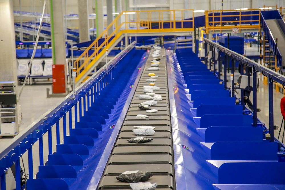 Сначала сканер считывает информацию, взвешивает и снимает замеры. После идёт сортировка на крупные или мелкие посылки. Большие встают на линию длиной 450 метров. Затем автоматически со своей каретки посылка отправляется в нужный контейнер.