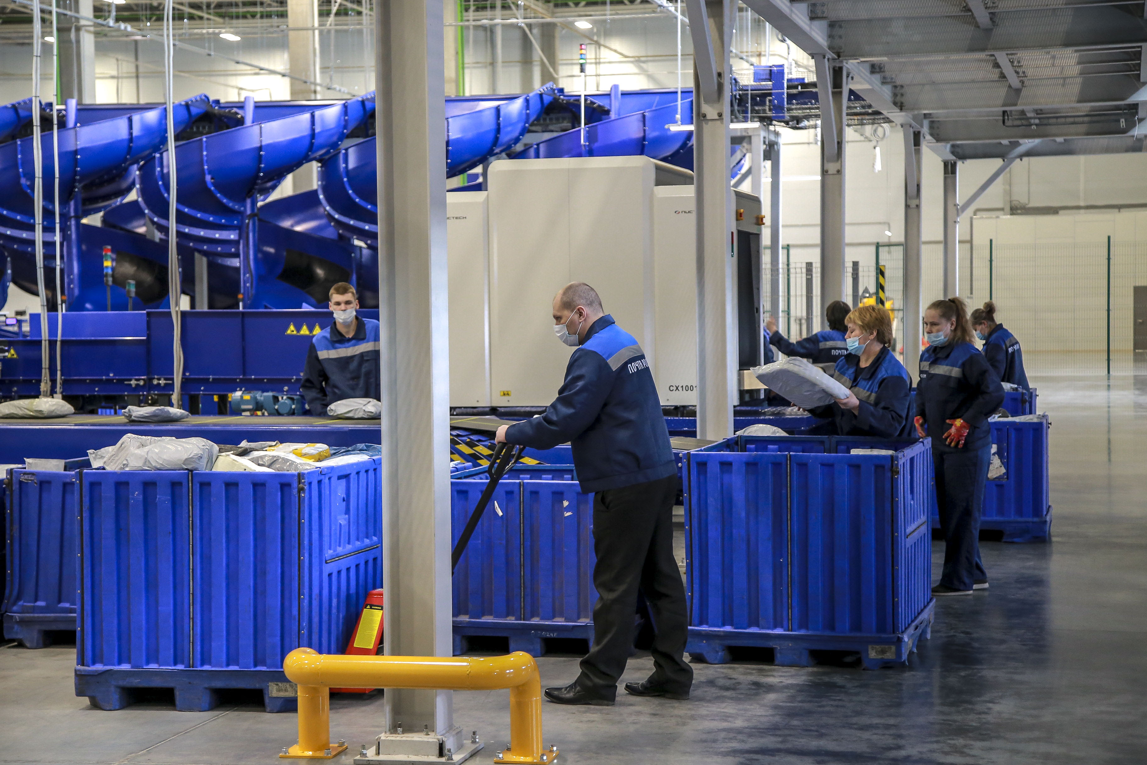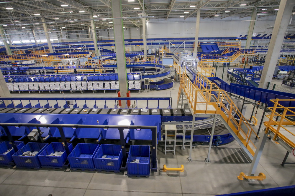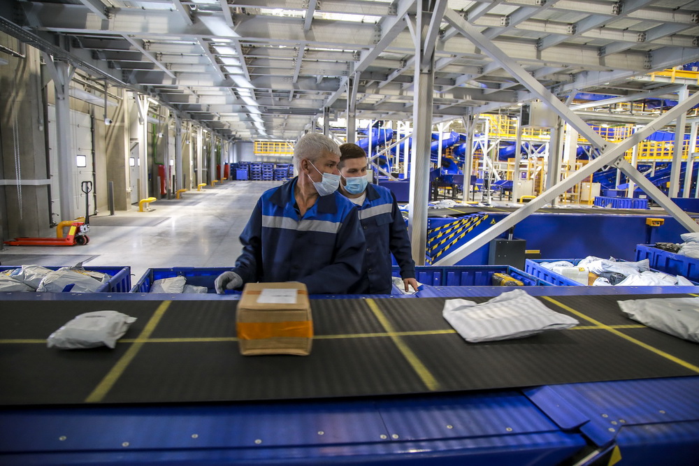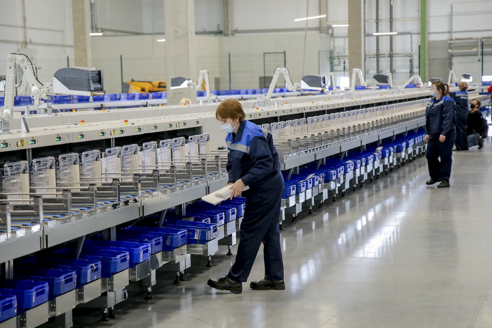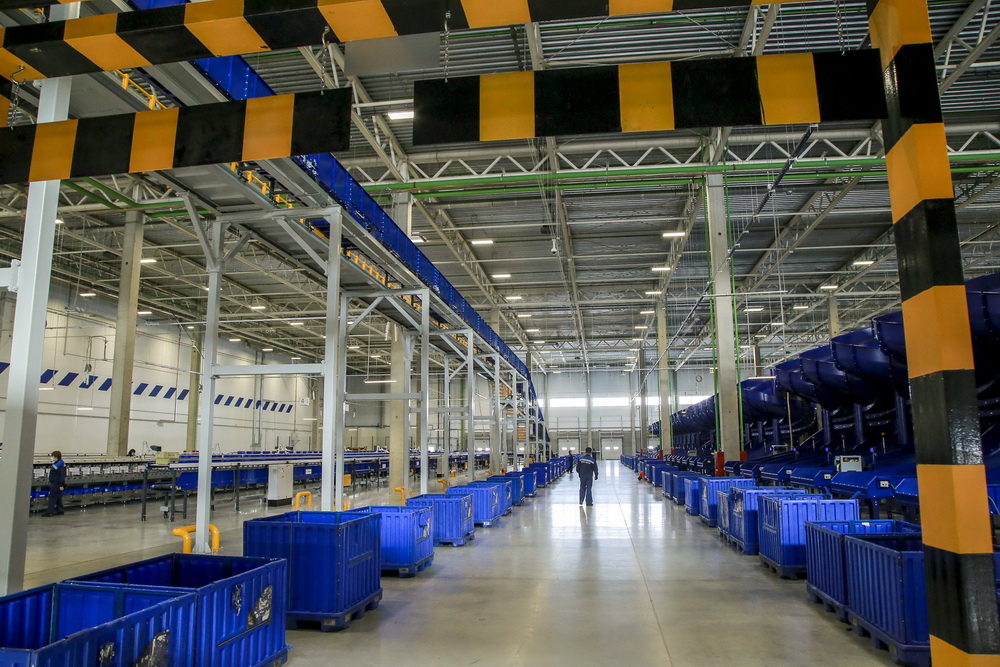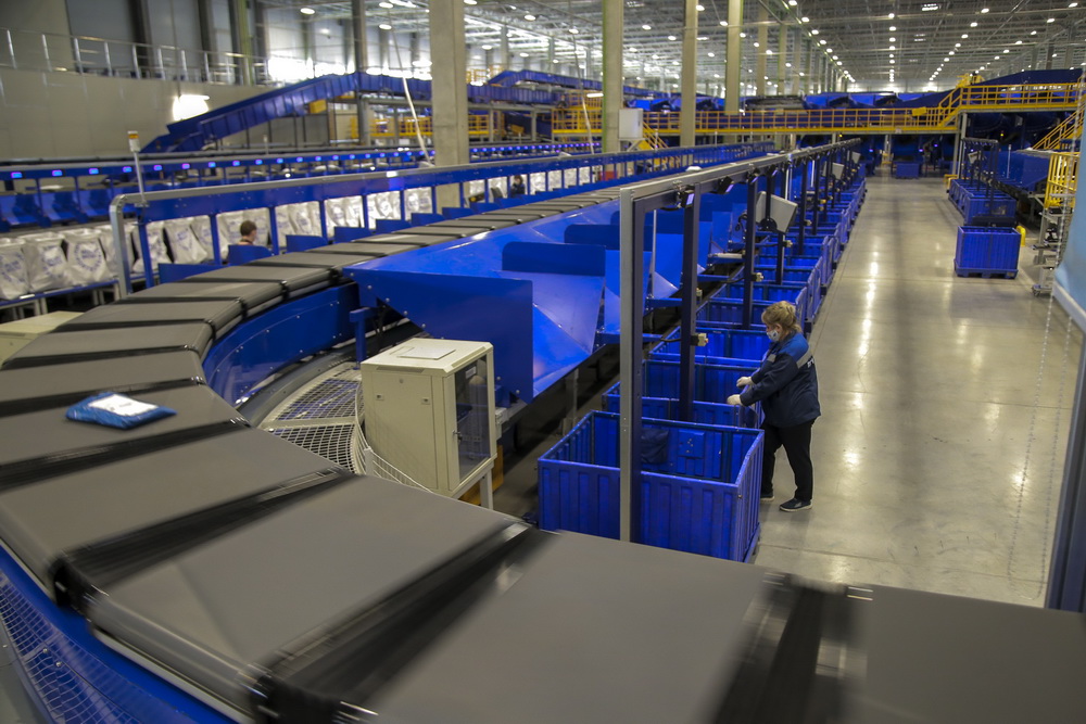 В логистическом почтовом центре человек касается посылки или письма всего дважды — во время загрузки на линию и после сортировки. А всё самое сложное делается автоматически. Новый центр сейчас — самый современный в стране. Мощности комплекса позволяют обрабатывать до 1,5 млн посылок и писем в день.