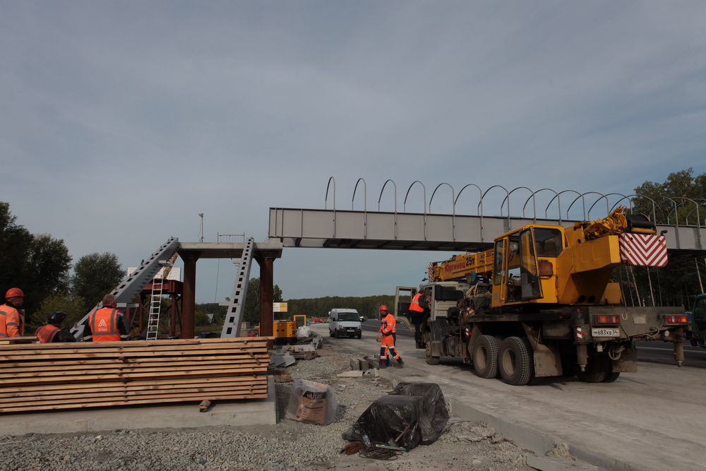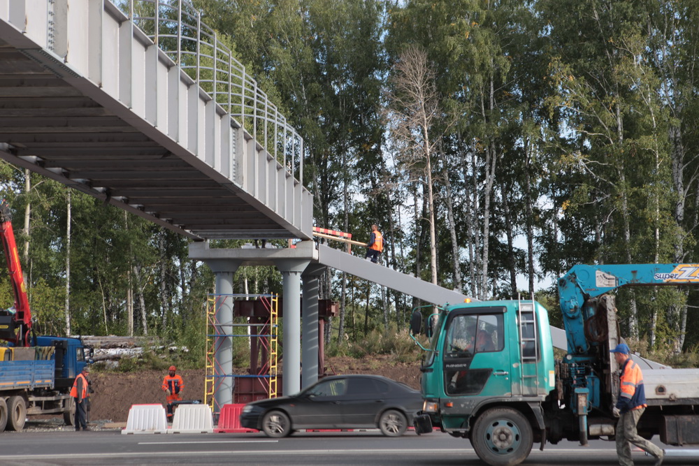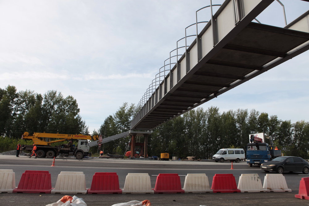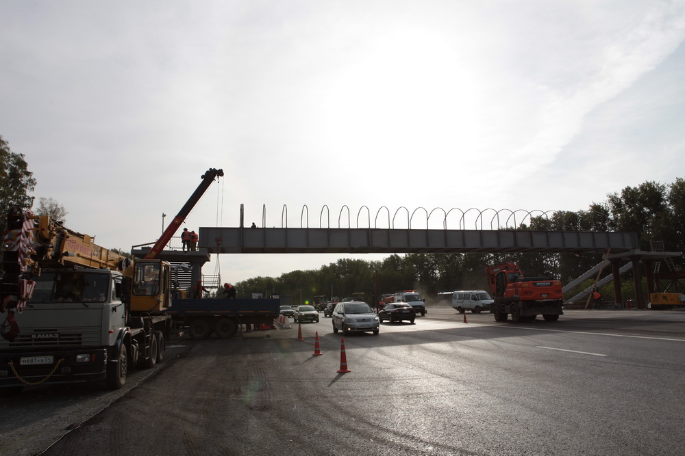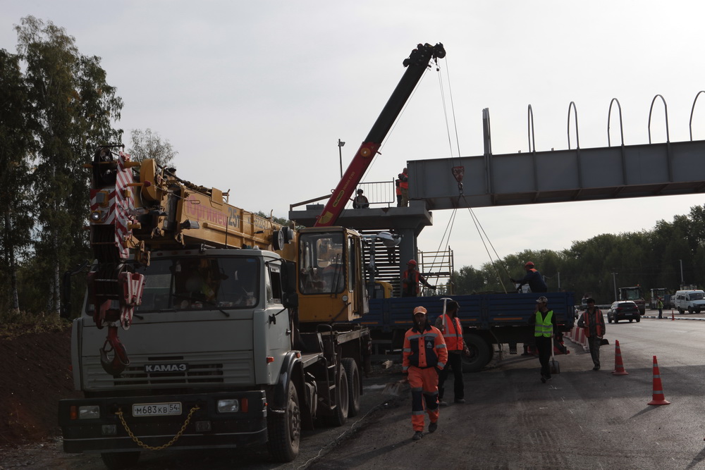 В ночь с субботы на воскресенье, 27 августа, на три с половиной часа перекрывали Ленинск-Кузнецкую трассу рядом с остановкой «Сады Медик» недалеко от села Раздольного, на восточном въезде в Новосибирск. За это время бригада установила на опоры пролёт пешеходного моста.