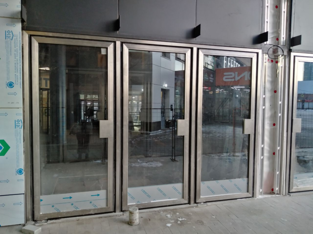 К 20 ноября оформили входную группу метро с северного фасада ТЦ. Его украшают огромная блестящая буква «М» и вывеска с названием станции. Три двери будут работать на вход, и столько же — на выход. С южной стороны здания также предусмотрели шесть дверей-пендельтюров.