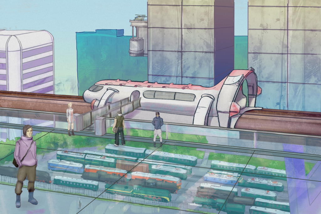 Андрей покинул кабину автожира, спустился со взлётно-посадочной платформы и, предъявив дежурному охраннику удостоверение инженера HyperTour Inc., отправился к трекеру, — нужно было пройти почти через весь Музей железнодорожной техники.