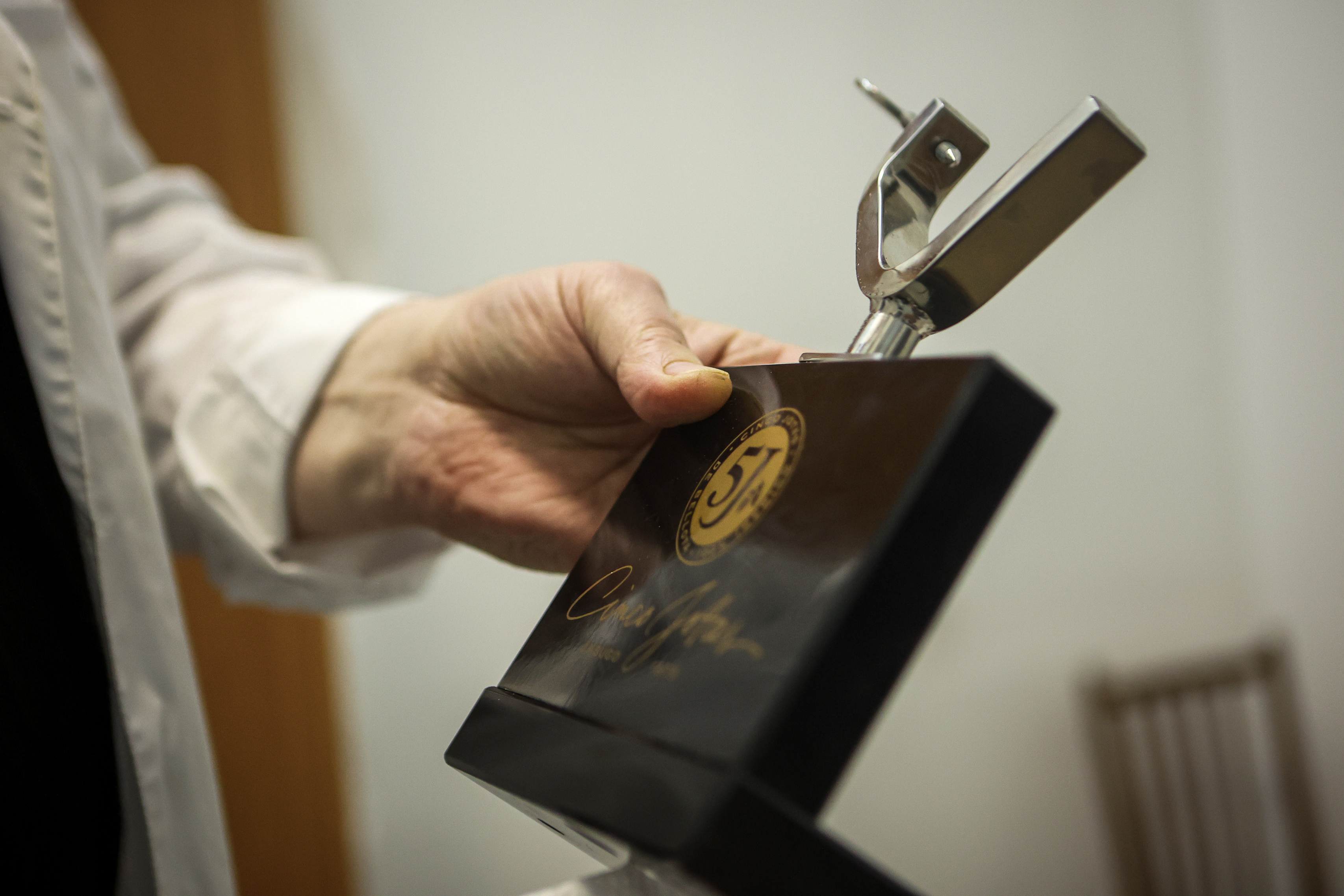 У Крестьяновых целая коллекция хамонер. Так называют устройства, на которые крепят хамон, чтобы его удобнее было резать. Два винта фиксируют «запястье», а на вилочку устанавливают крупную часть. Вилку, кстати, заказывают отдельно у кузнеца, потому что магазинные часто гнутся и ржавеют.