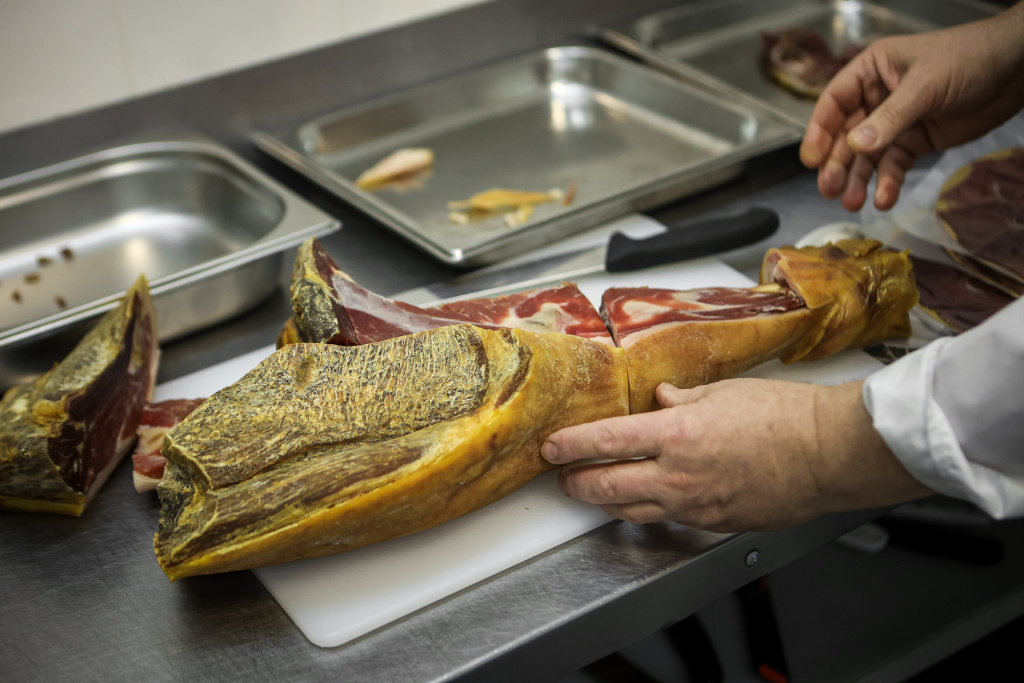 Начинать знакомство с хамоном рекомендуют с нарезки, а уже потом можно переходить на более серьёзный уровень: дегустировать ногу.
