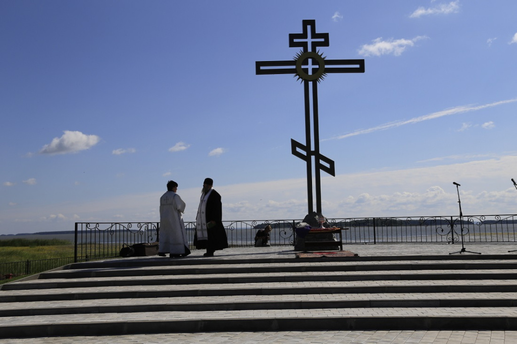 Сергей Колонцов: Это, скажем, район того места. На месте битвы сейчас — Обское море. Во времена сражения, в 1598 году, река Ирмень была гораздо дальше, и место её впадения в Обь было дальше. На левом, противоположном, берегу Ирмени в селе Новопичугово стоит памятный крест, но он тоже не на месте сражения. Само место битвы затоплено.