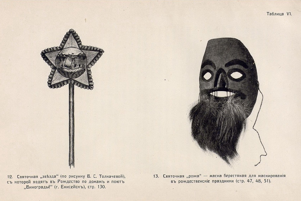 Елена Фурсова: Если говорить про Новосибирскую область, то в правобережье Оби слово «коляда» практически было неизвестно. А вот на левом берегу, там, где вдоль Сибирско-Московского тракта было много переселенцев из Центральной России, там и коляды пели — это называлось «кликать коляду», — и таусени пели (таусень — разновидность колядки, таусенем называли канун Нового года, 31 декабря. — Прим. автора). Распевая такие песни, было принято ходить по домам.