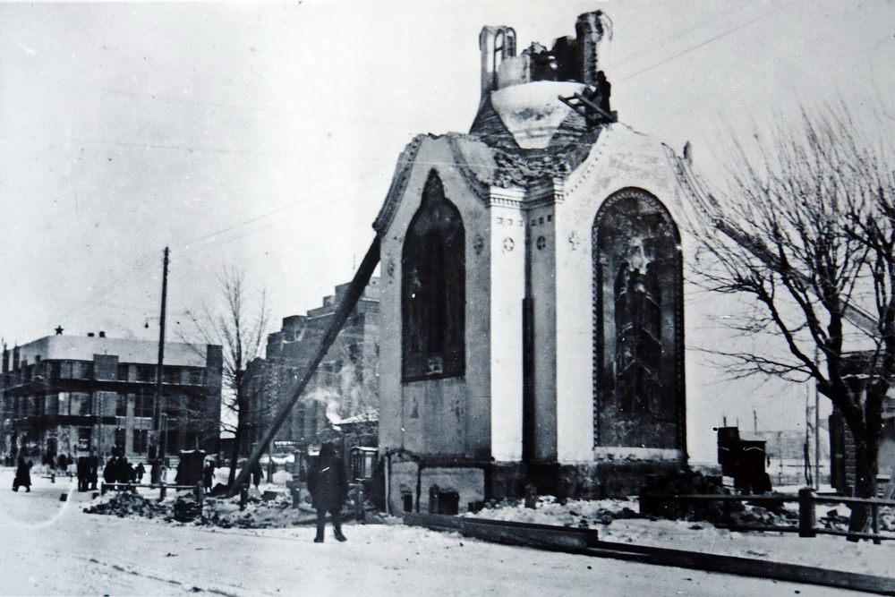 9 ноября 1929 года прошло заседание Новосибирского окрисполкома, на котором, «учитывая пожелания трудящихся масс и считаясь с благоустройством города», было одобрено постановление горсовета о сносе часовни на Красном проспекте. После конфискации всего церковного имущества в январе 1930 года часовню снесли. На её месте поставили памятник рабочему-молотобойцу, который вскоре заменили памятником Сталину. Его снесли уже после разоблачения культа личности.