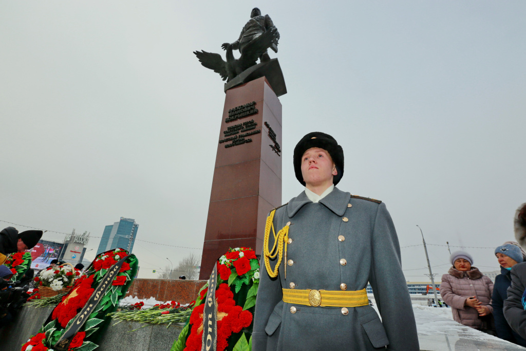 Евгений Ларин: Завершая разговор о памяти Покрышкина, которую хранит наш город, стоит сказать, что в Новосибирске есть несколько памятников Александру Ивановичу: на площади Маркса, на Красном проспекте, у технического колледжа имени Покрышкина, — бывшего ФЗУ, на Станционной...
