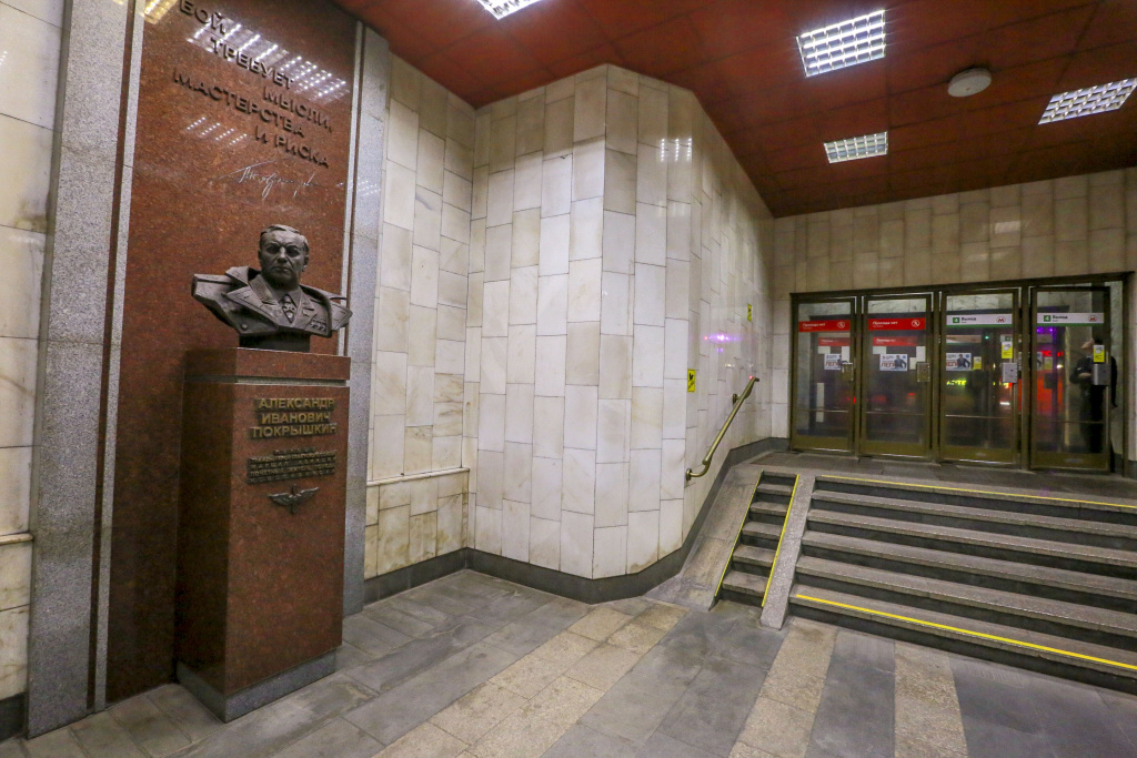 Наталья Липатникова: Ещё относительно недавно открыли памятник на станции метро Маршала Покрышкина. Он, кстати, повторяет скульптуру с Новодевичьего кладбища, где похоронен Александр Иванович, — там он уже в возрасте, пожилой человек.