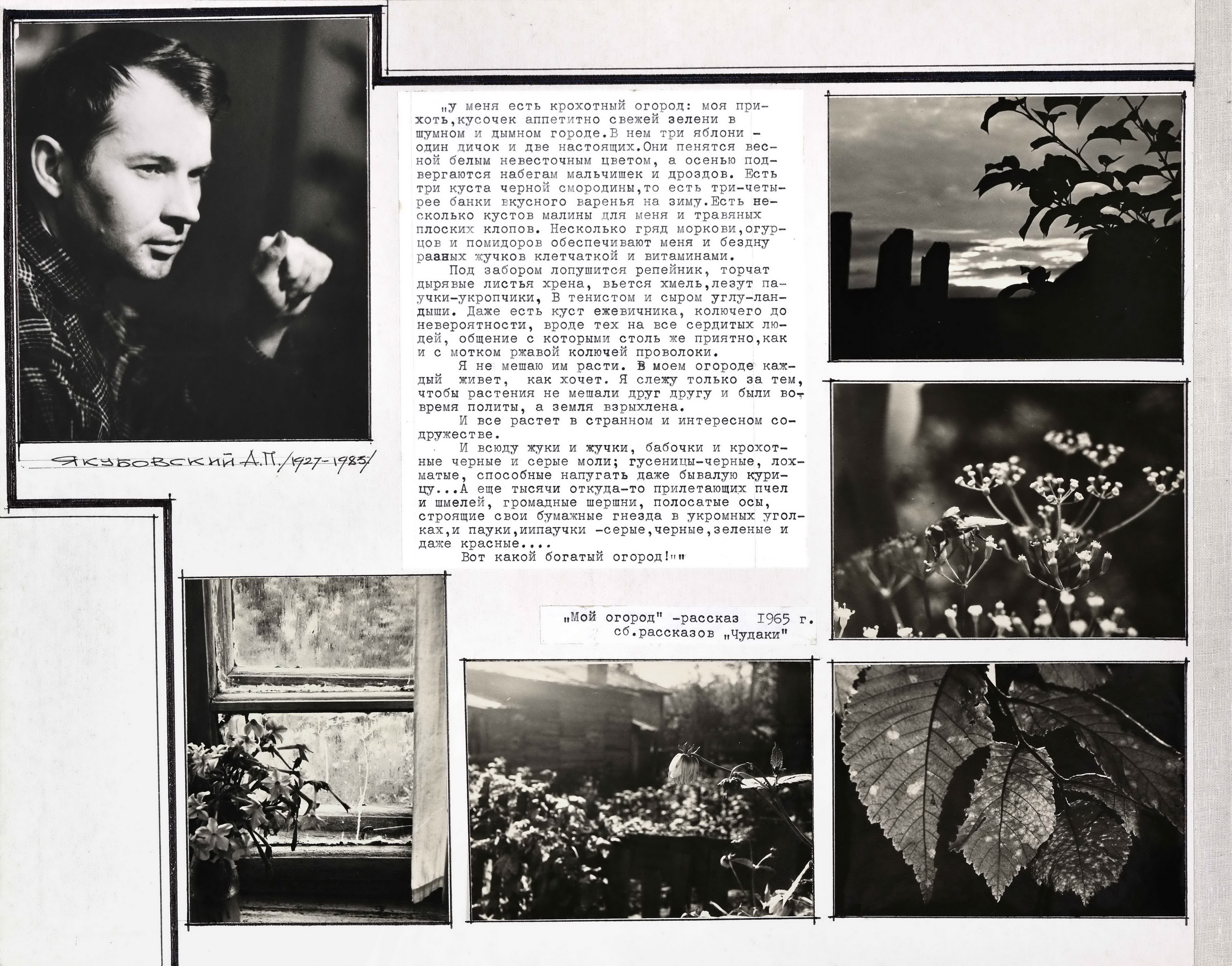 А потом, через много лет, произошёл совершенно удивительный момент — момент узнавания. Это случилось, когда в семейном альбоме Якубовских (а мы уже сказали о том, что он оформлен соответствующими словами) я прочёл отрывок из рассказа, это были буквально те слова, которыми начинается рассказ «Белые братья» из сборника «Багряный лес».