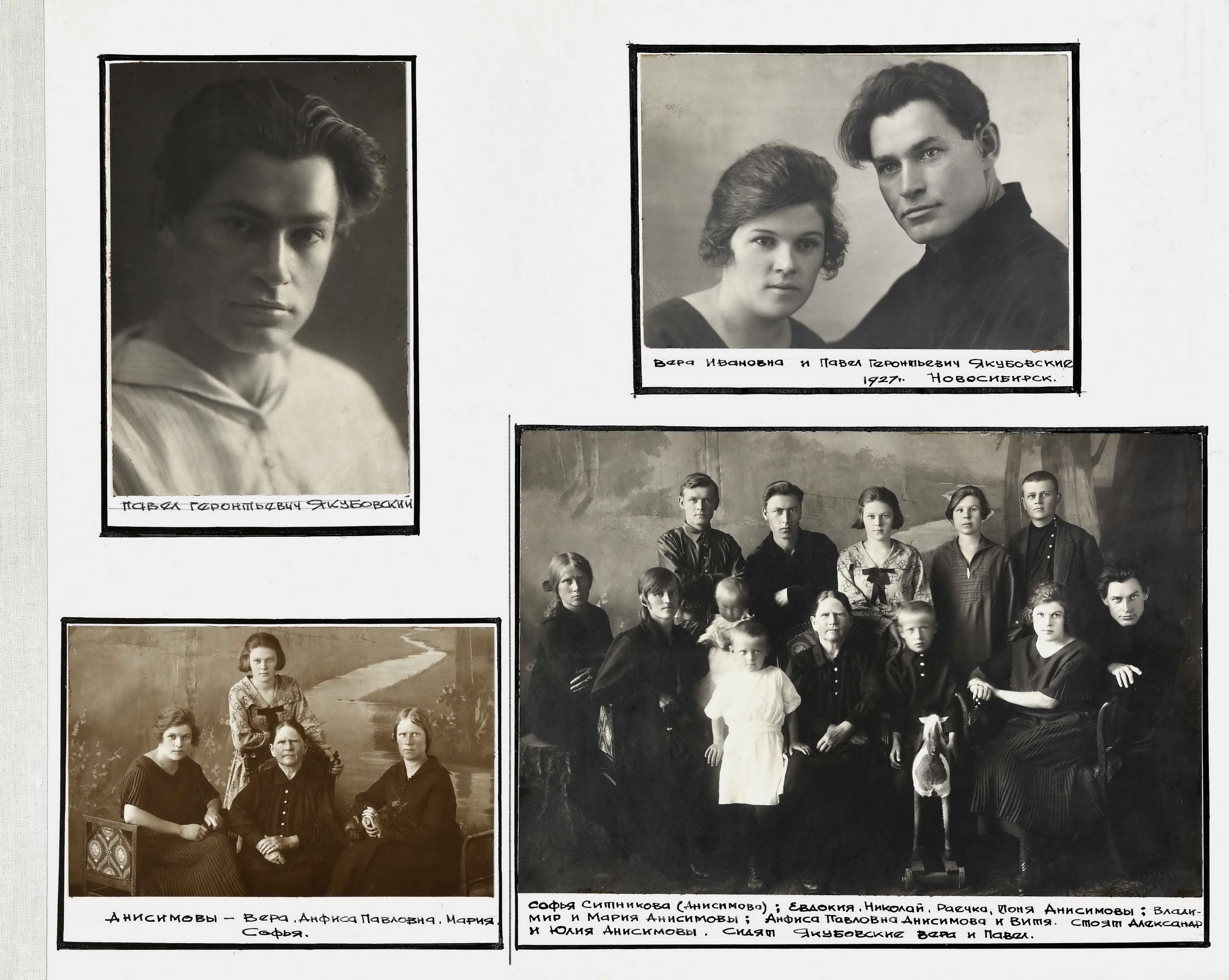 Евгений Ларин: Вы знаете, мне кажется, что Любовь Павловна, которая составляла фотоальбом, вполне отдавала себе отчёт в том, что она создаёт не просто семейную летопись, а создаёт историю значимой для города семьи — семьи художника и писателя, и что этот альбом в будущем будет востребован городским сообществом, краеведами, историками искусства. Она, по сути, занималась бытоописанием не одной семьи, а значительного числа новосибирцев 1930-х годов. Ведь в бытовом плане семья Якубовских не была уникальной, в таких же условиях тогда жила большая часть горожан. Мне кажется, что Любовь Павловна Якубовская была в некотором роде провидцем.