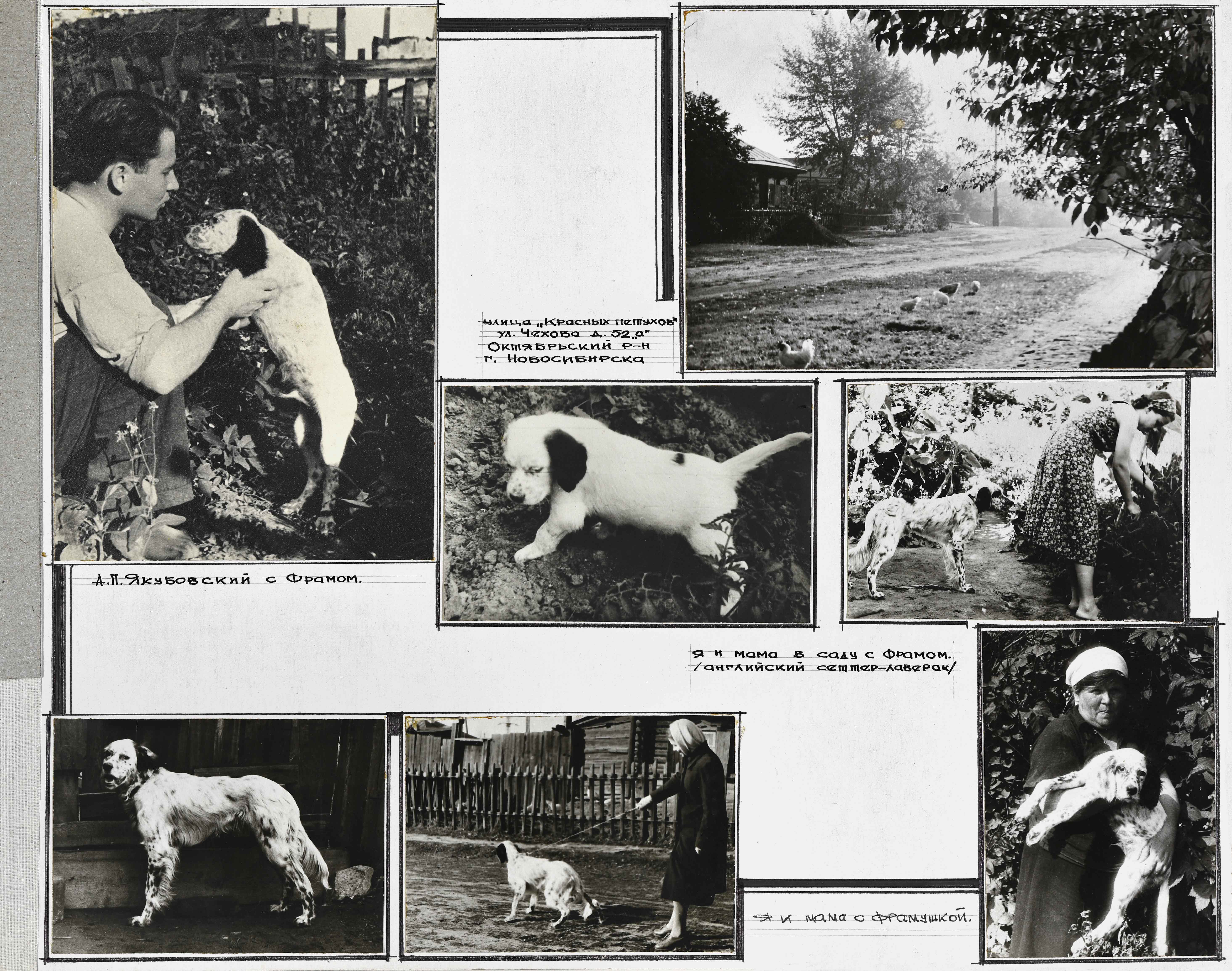 Татьяна Голубченко: Естественно, в бочке, которая была оборудована под конуру. Диоген — это совершенно очаровательное создание! На выставке вы увидите его фотопортрет, это очень интересный персонаж. Кроме него в семье Якубовских жили и другие собаки, в том числе, пёс Фрам. Это охотничья собака, сеттер, с замечательными инстинктами, как и положено охотничьей собаке. Он постоянно тыкался в ладошки маме, — об этом всё время вспоминала Любовь Павловна.