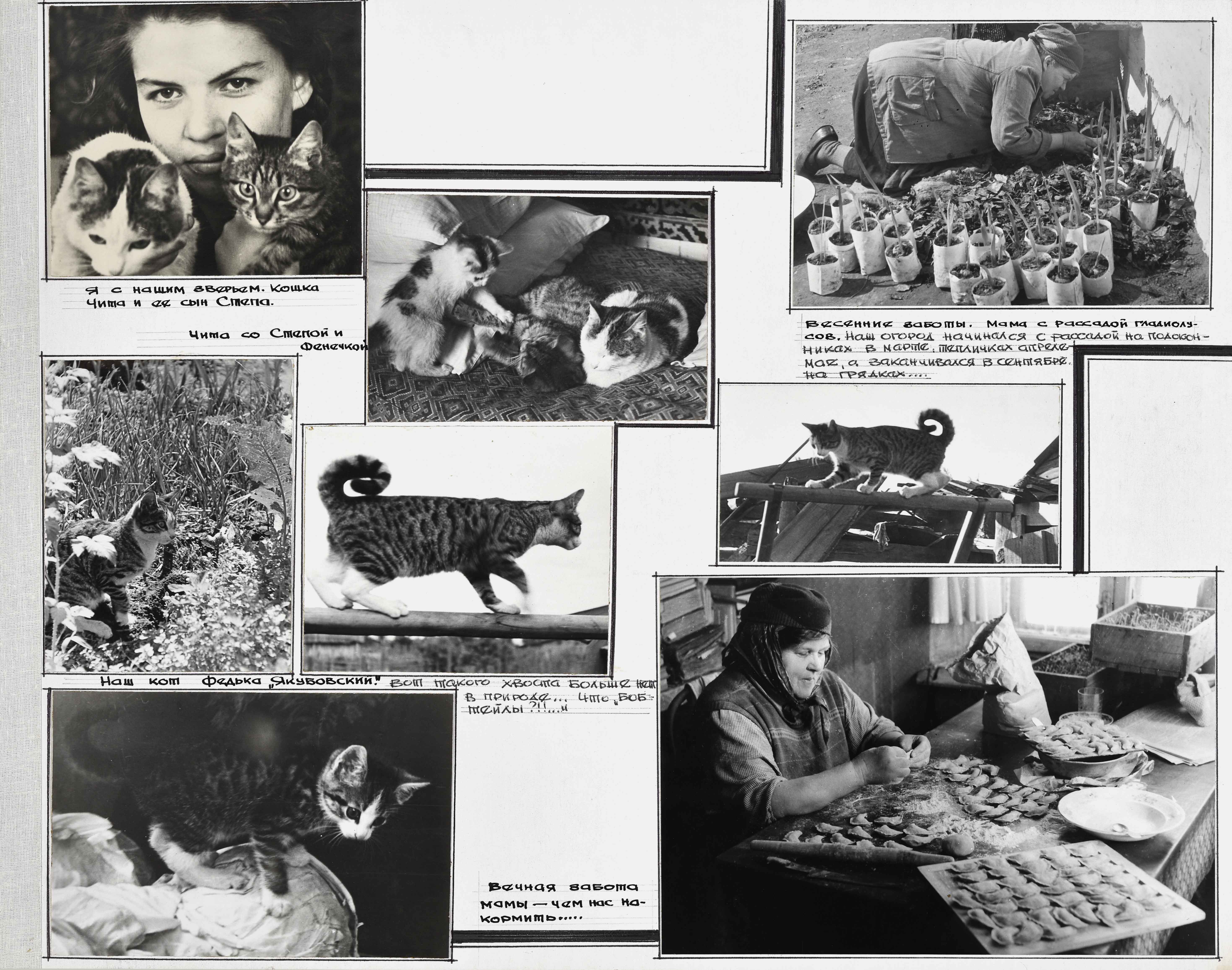 Евгений Ларин: Вот давайте про них и поговорим! Их много на фотографиях. Я помню, там был кот Федька с хвостом, всегда в загнутым в подобие рулетика.